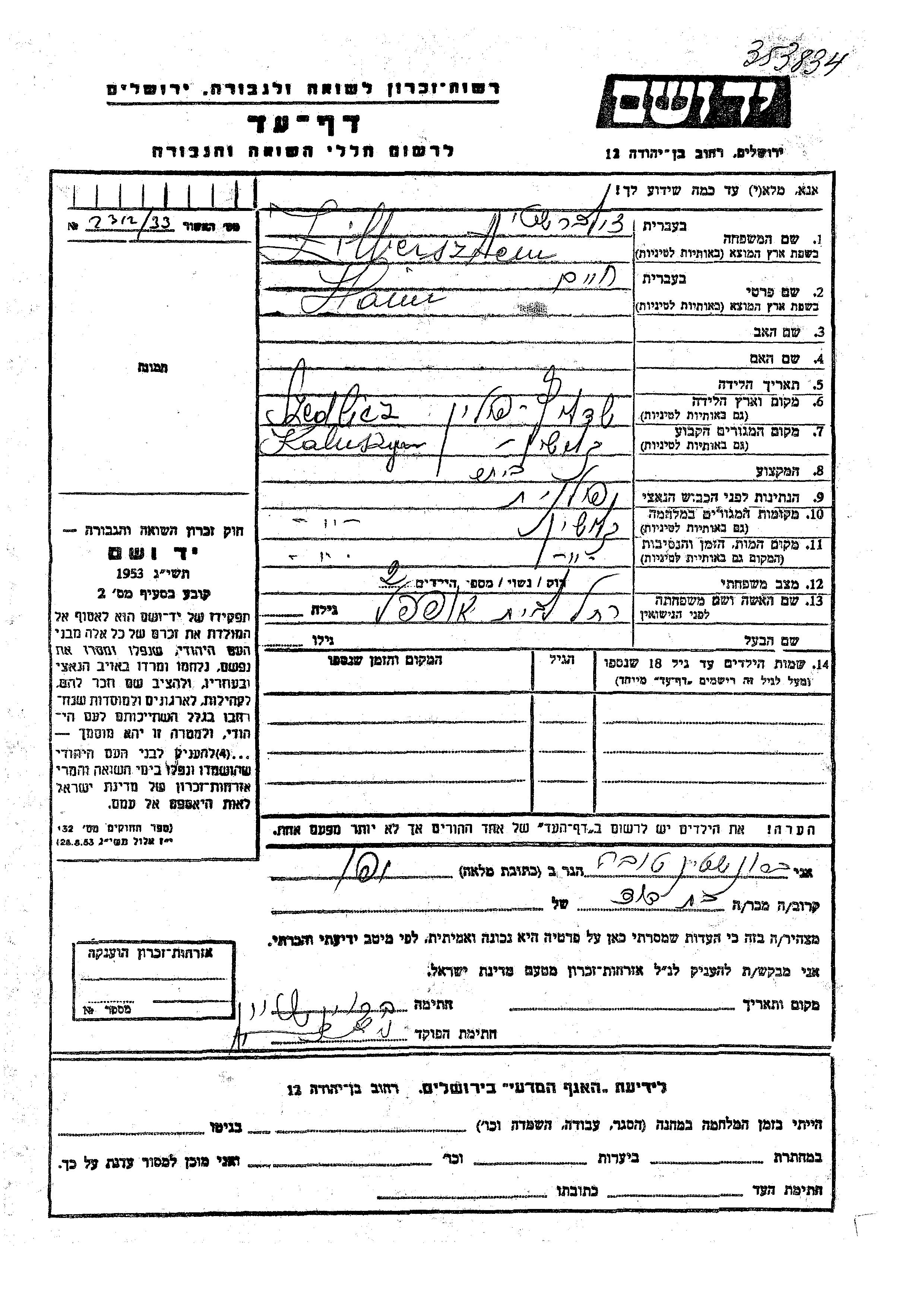 Zilbersztein Haim Kaluszyn, Pologne Feuille de témoignage