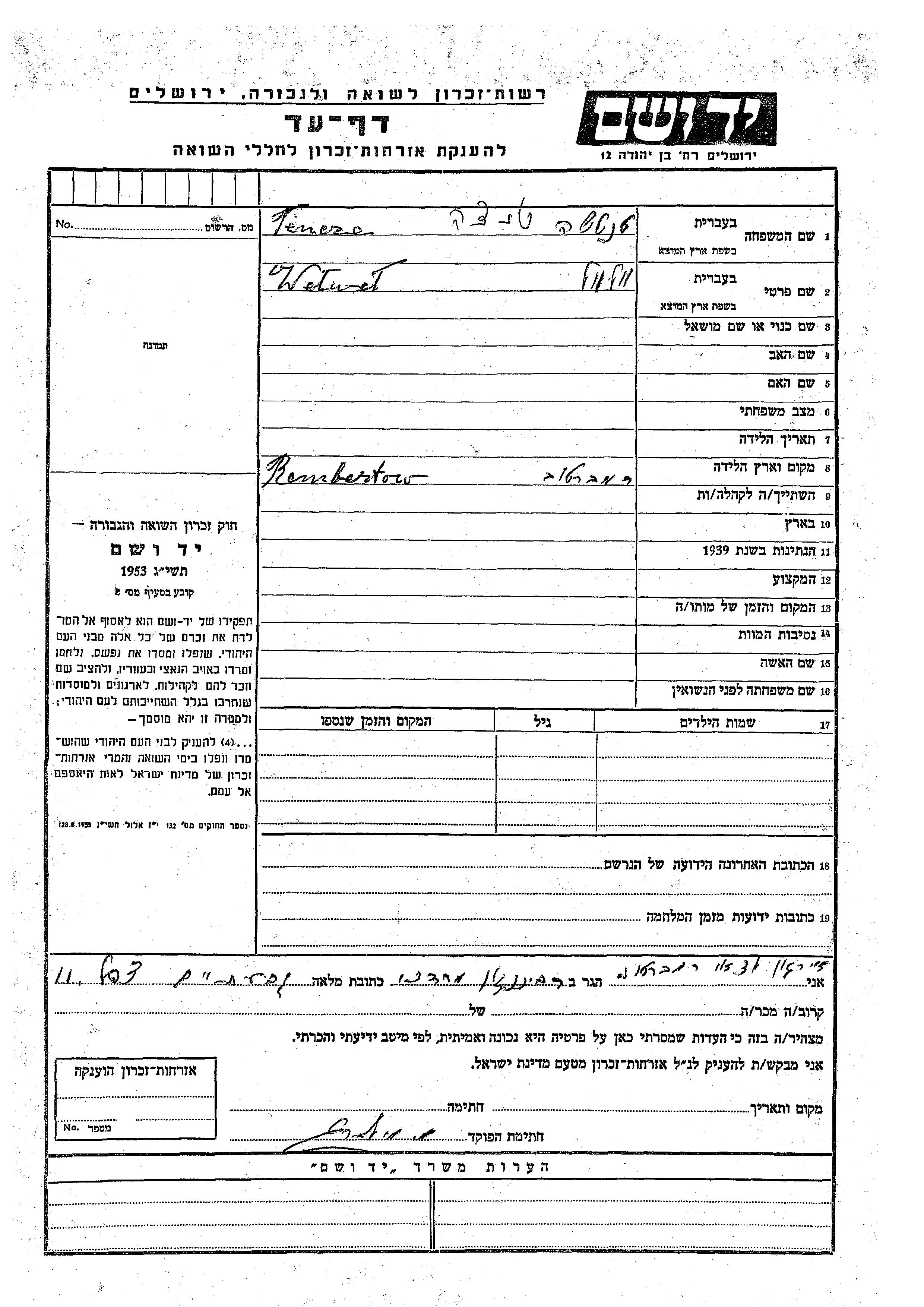 Yad Vashem - Pages of Testimony Names Memorial Collection