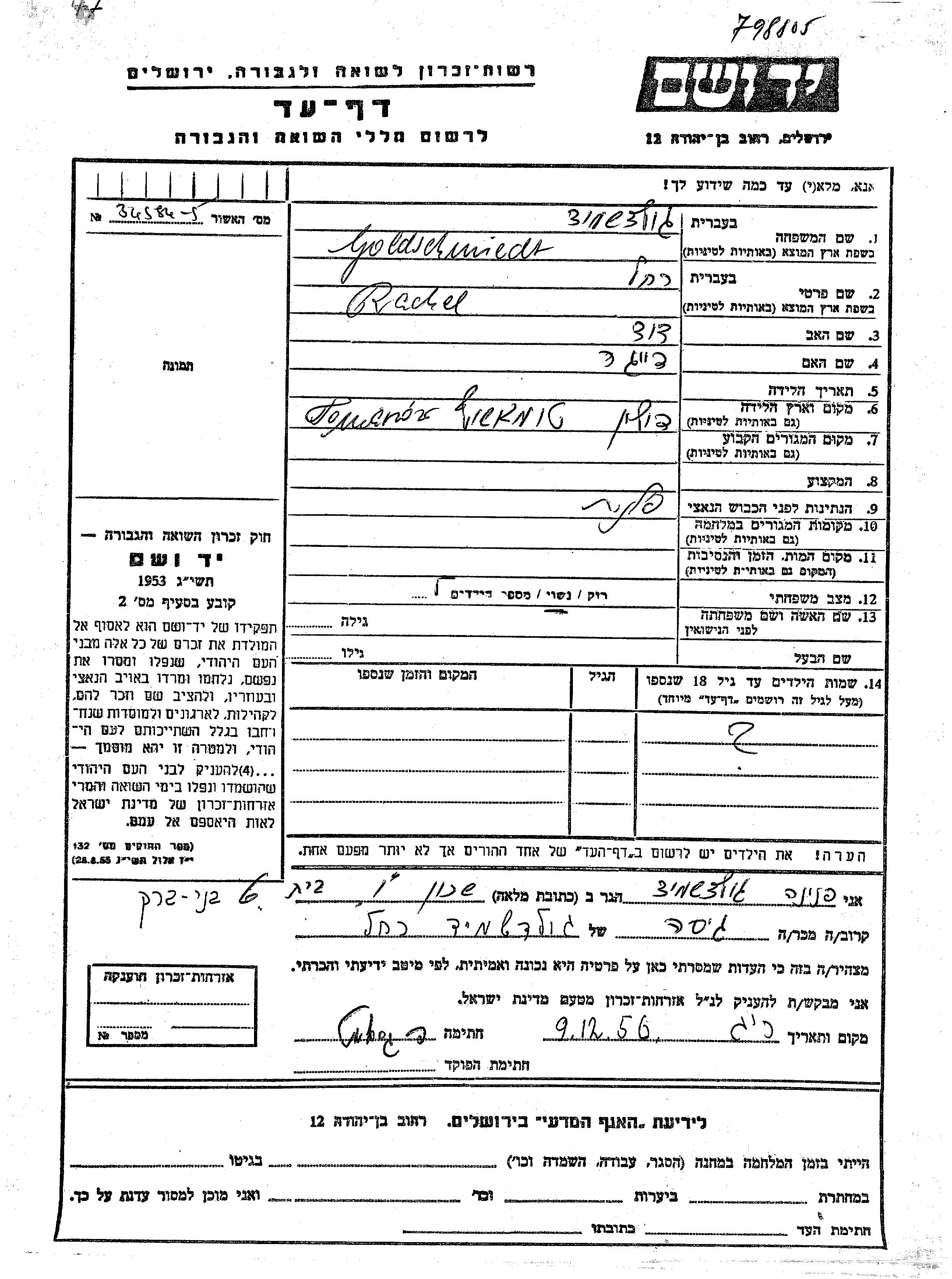 Yad Vashem - Pages of Testimony Names Memorial Collection