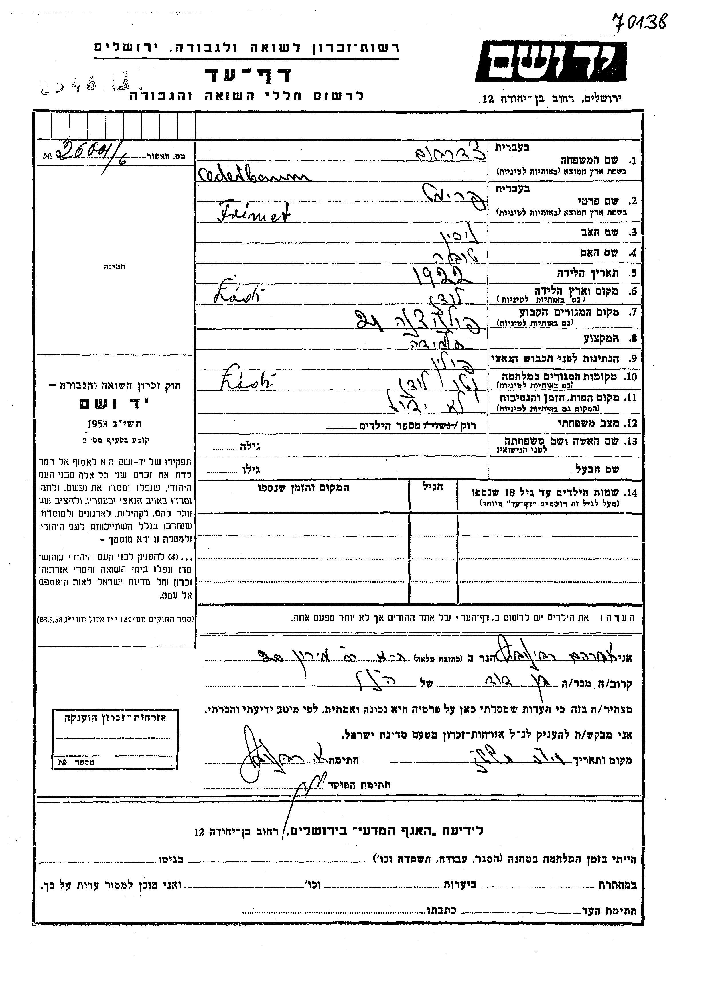Yad Vashem - Pages of Testimony Names Memorial Collection