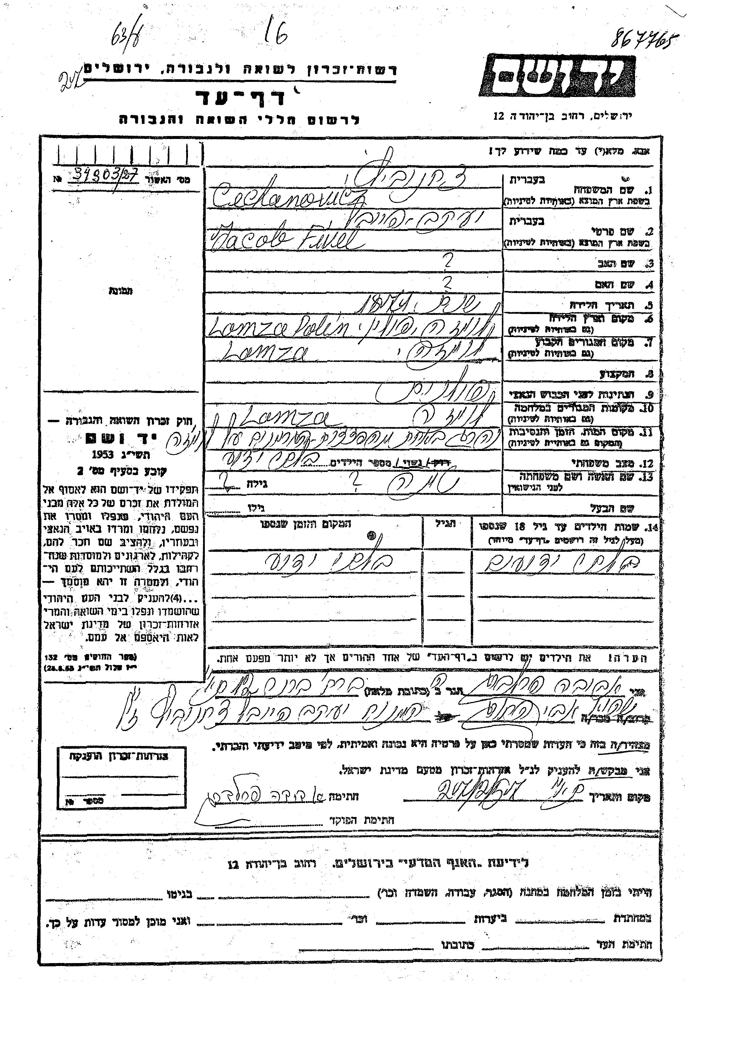 Yad Vashem - Pages of Testimony Names Memorial Collection