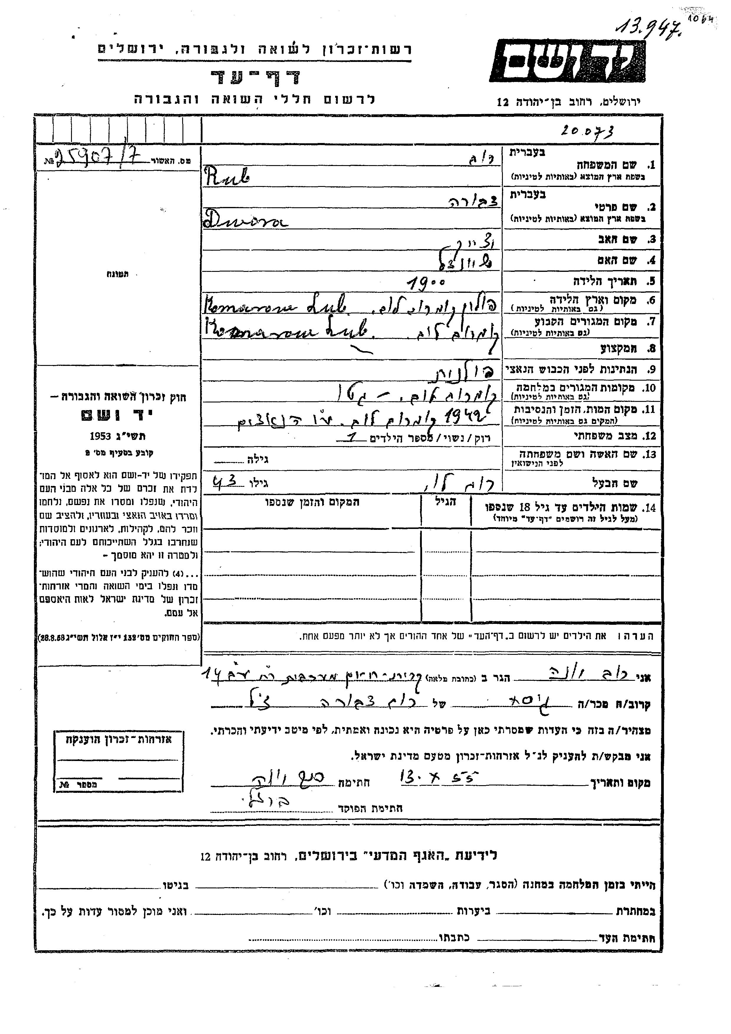 Yad Vashem - Pages of Testimony Names Memorial Collection