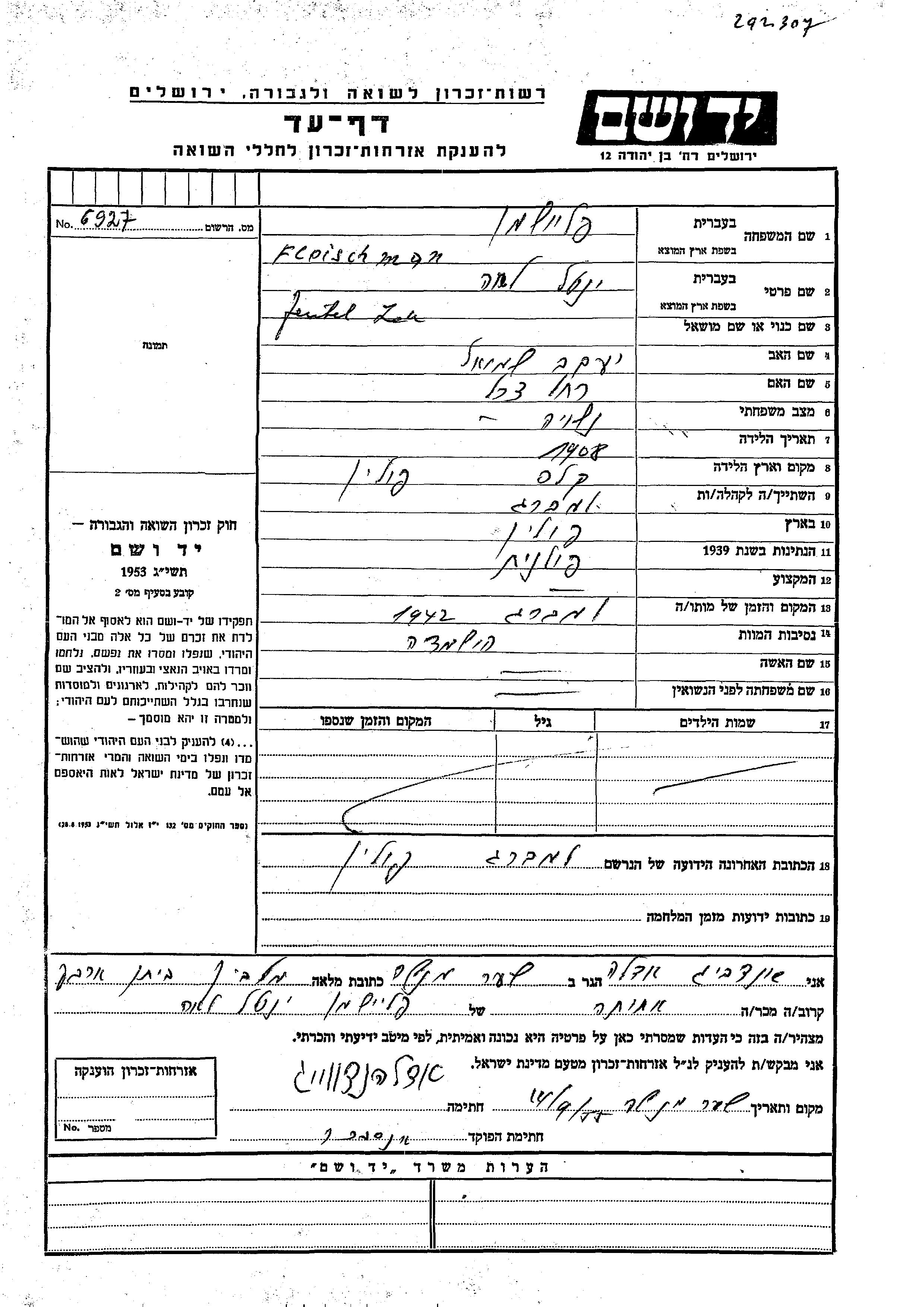 Yad Vashem - Pages of Testimony Names Memorial Collection