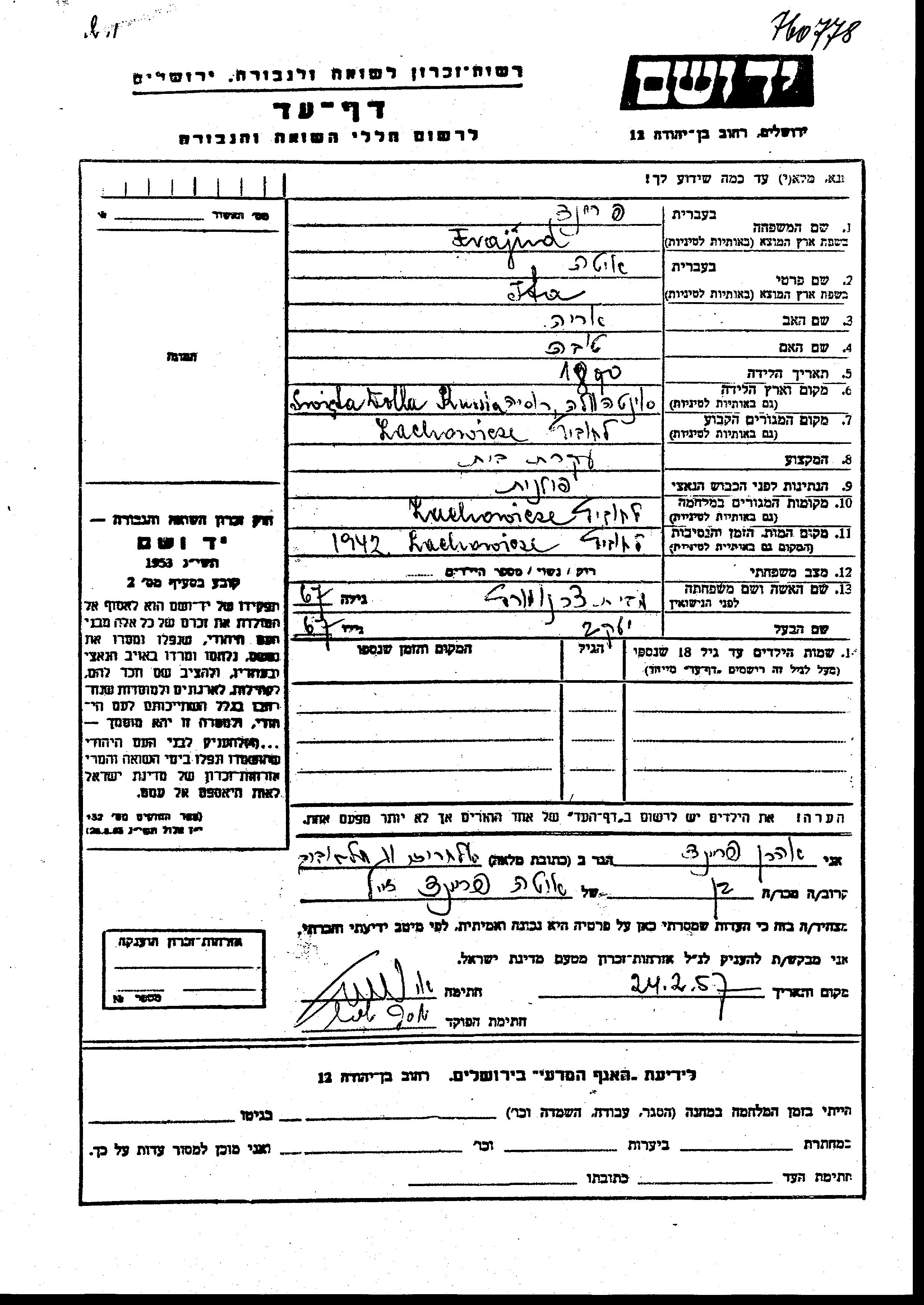 Yad Vashem - Pages of Testimony Names Memorial Collection