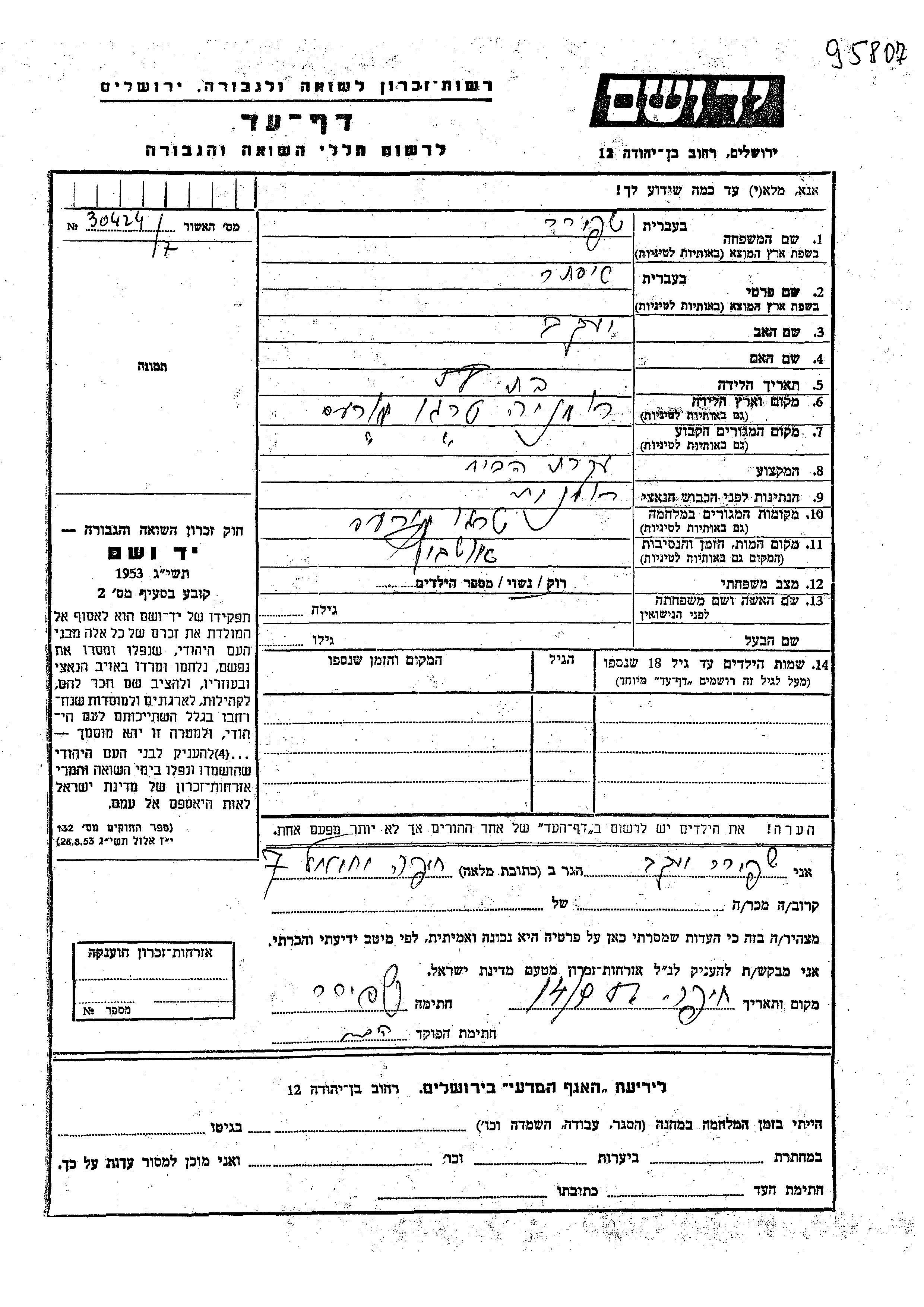 Yad Vashem - Pages of Testimony Names Memorial Collection