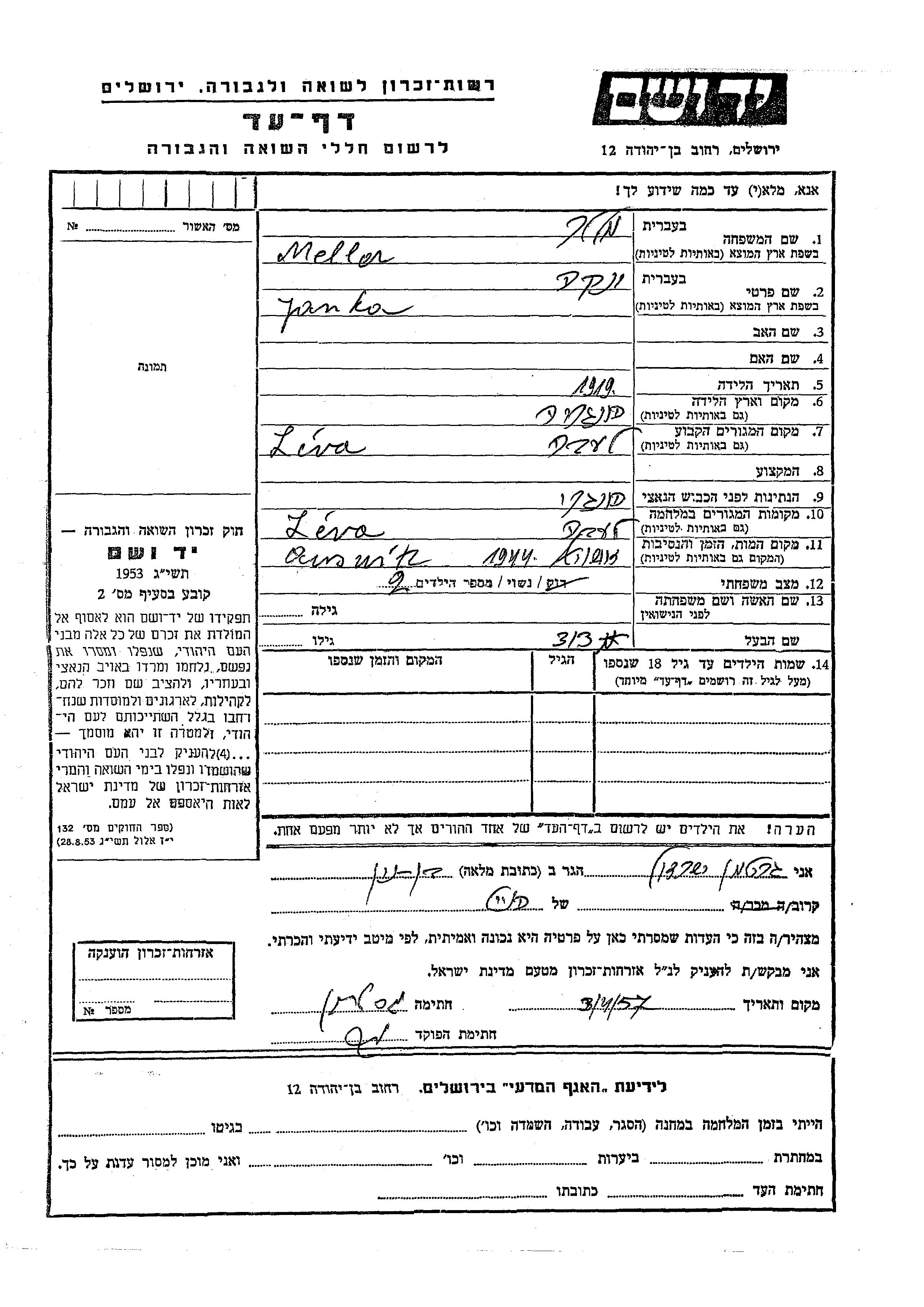 Yad Vashem - Pages of Testimony Names Memorial Collection
