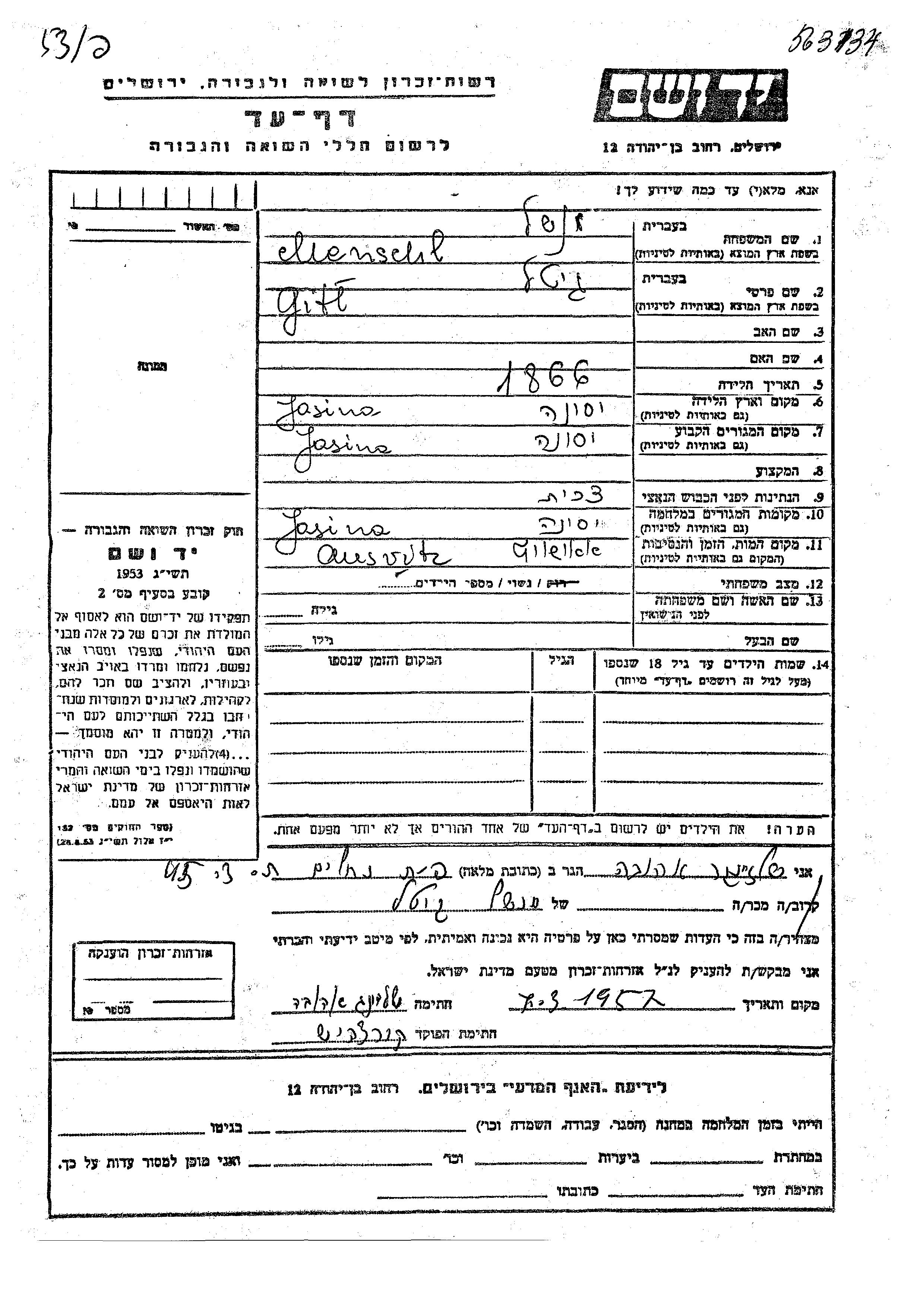 Yad Vashem - Pages of Testimony Names Memorial Collection