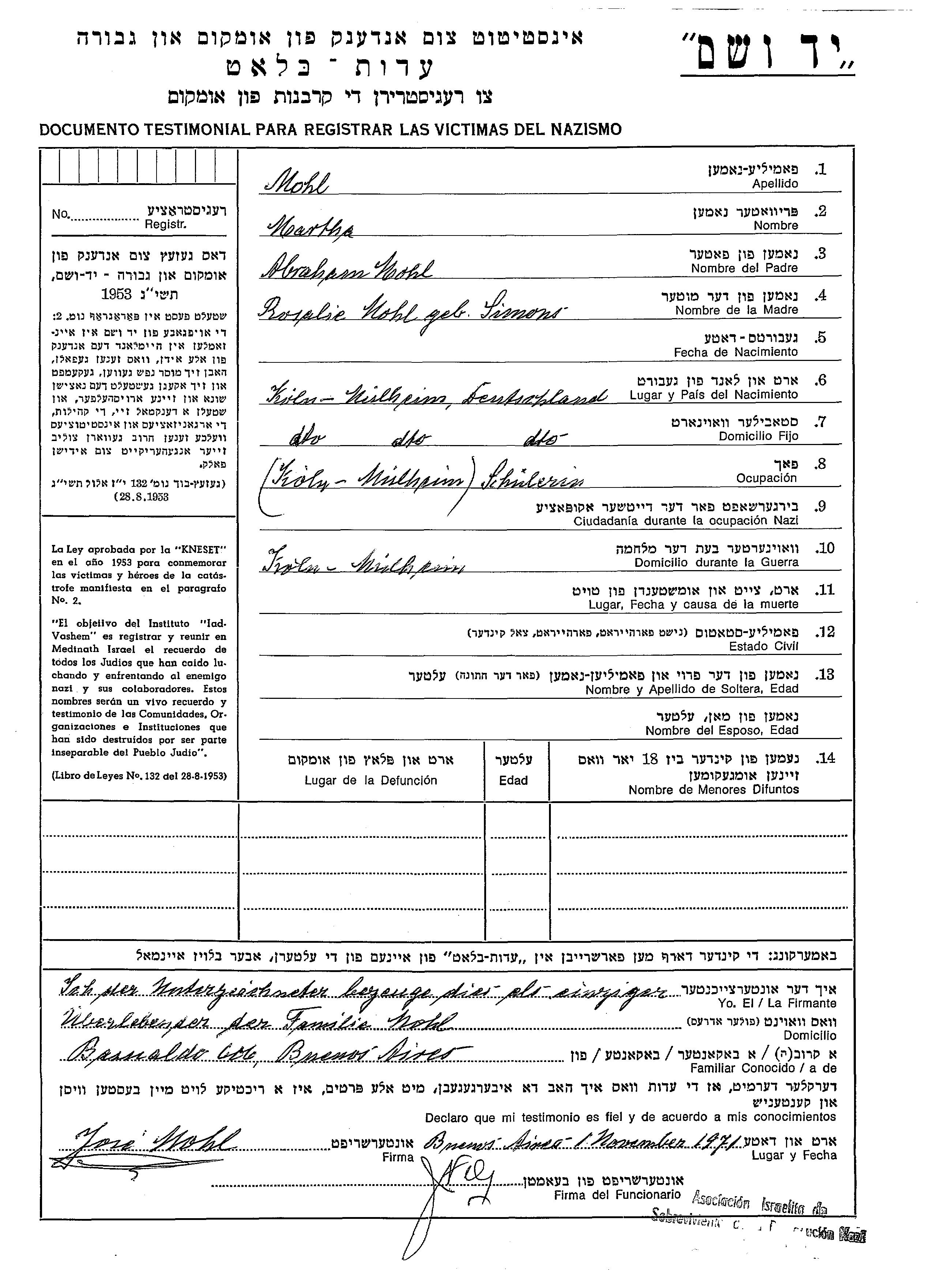 Yad Vashem - Pages of Testimony Names Memorial Collection