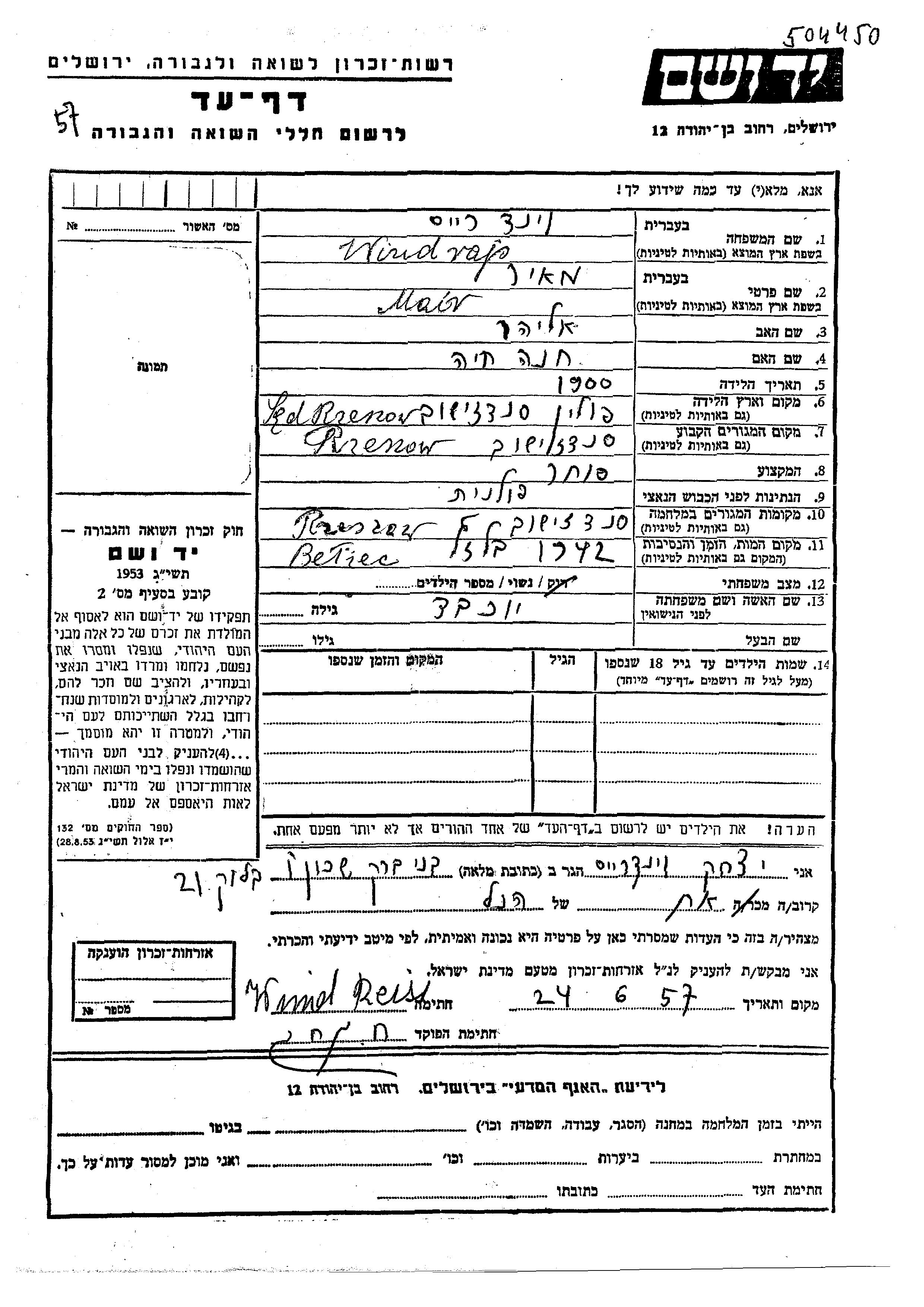 Yad Vashem - Pages of Testimony Names Memorial Collection