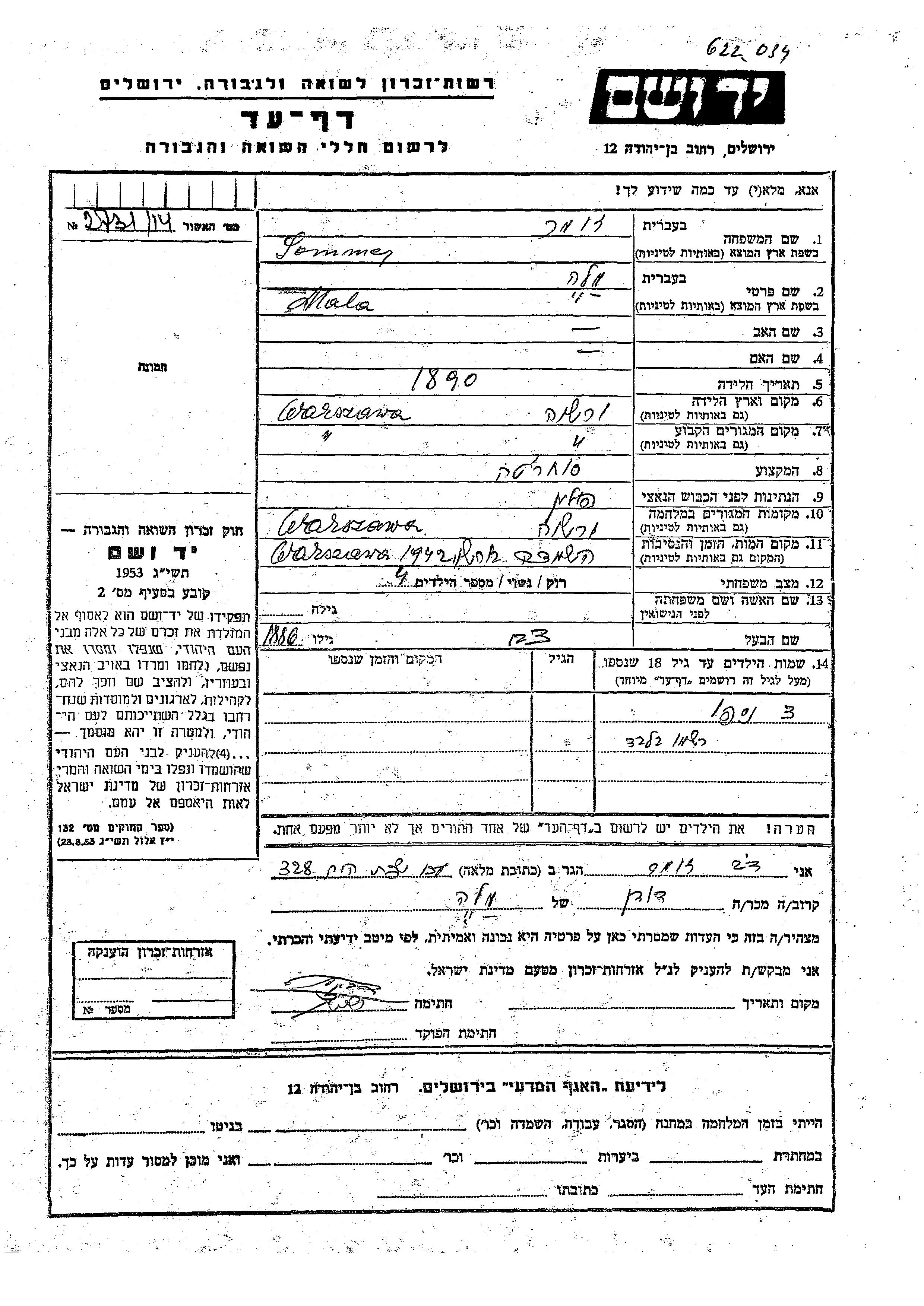 Yad Vashem - Pages of Testimony Names Memorial Collection