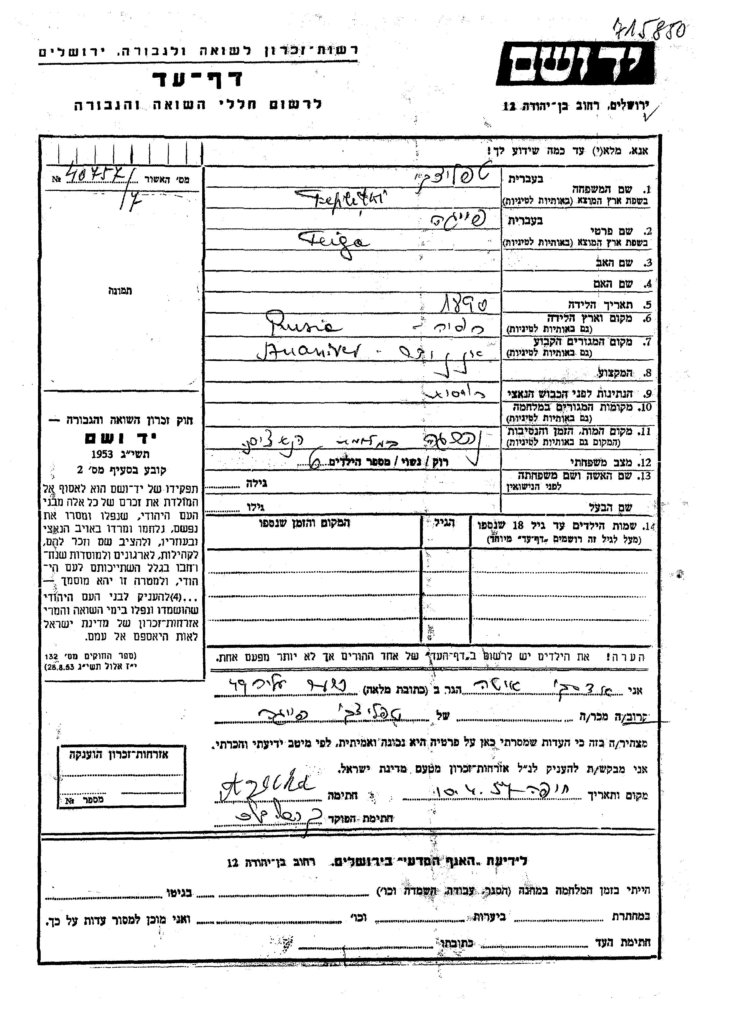 Recherche par date de la mort pendant la période de la Shoah: 1933-1945. Sélectionnez 'Exact'; dans la liste pour rechercher l'année exacte, ou sélectionner '+/- 2 ans'; ou '+/- 5 ans