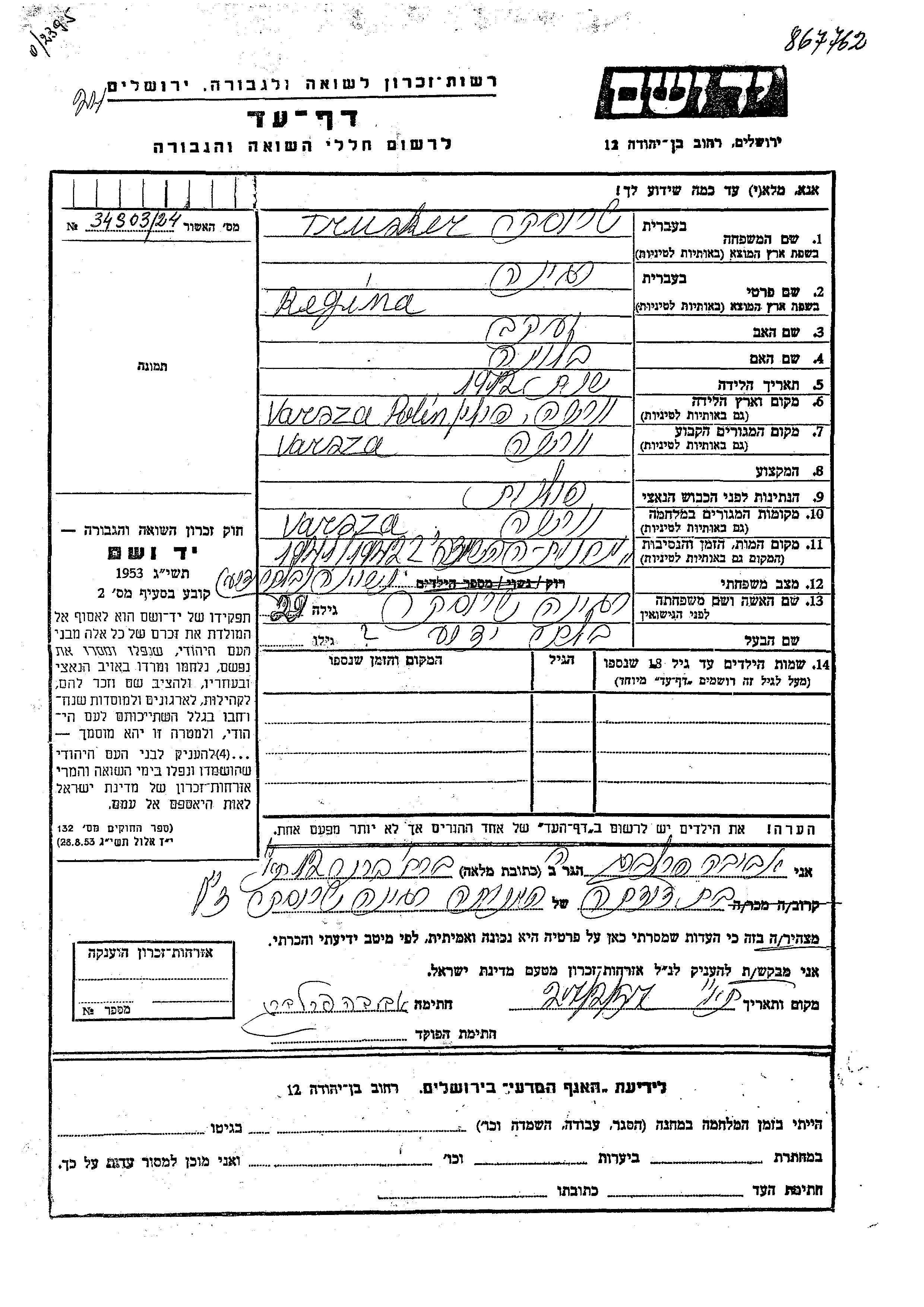 Regina a été assassinée pendant la Shoah. Lieu de la mort: Warsaw, Pologne en 1941.