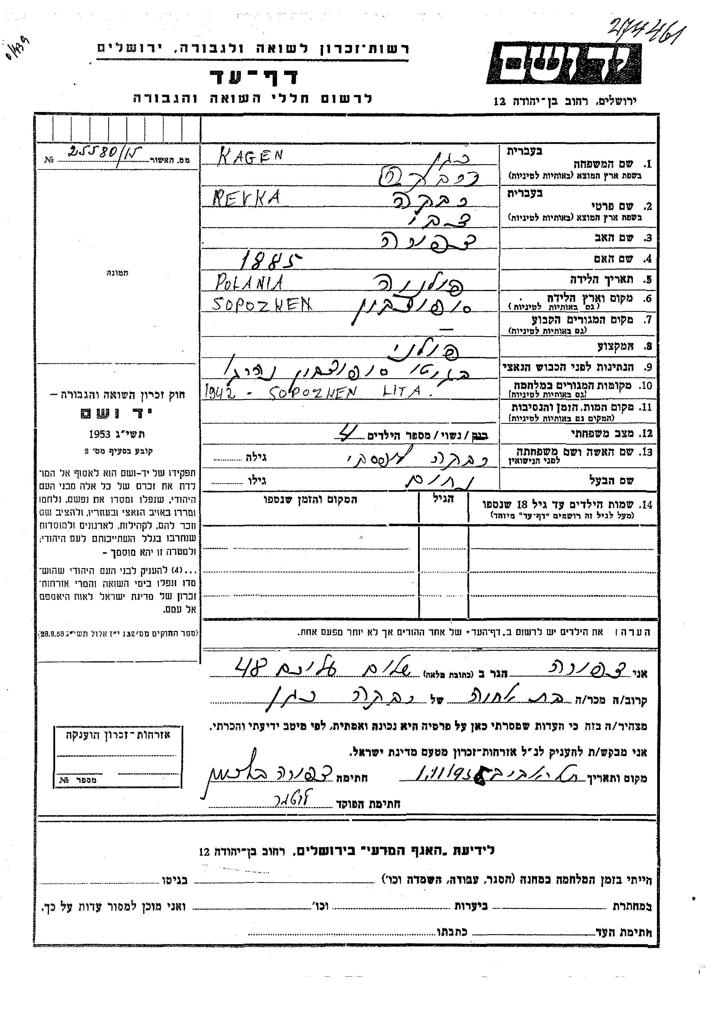 Yad Vashem - Pages of Testimony Names Memorial Collection