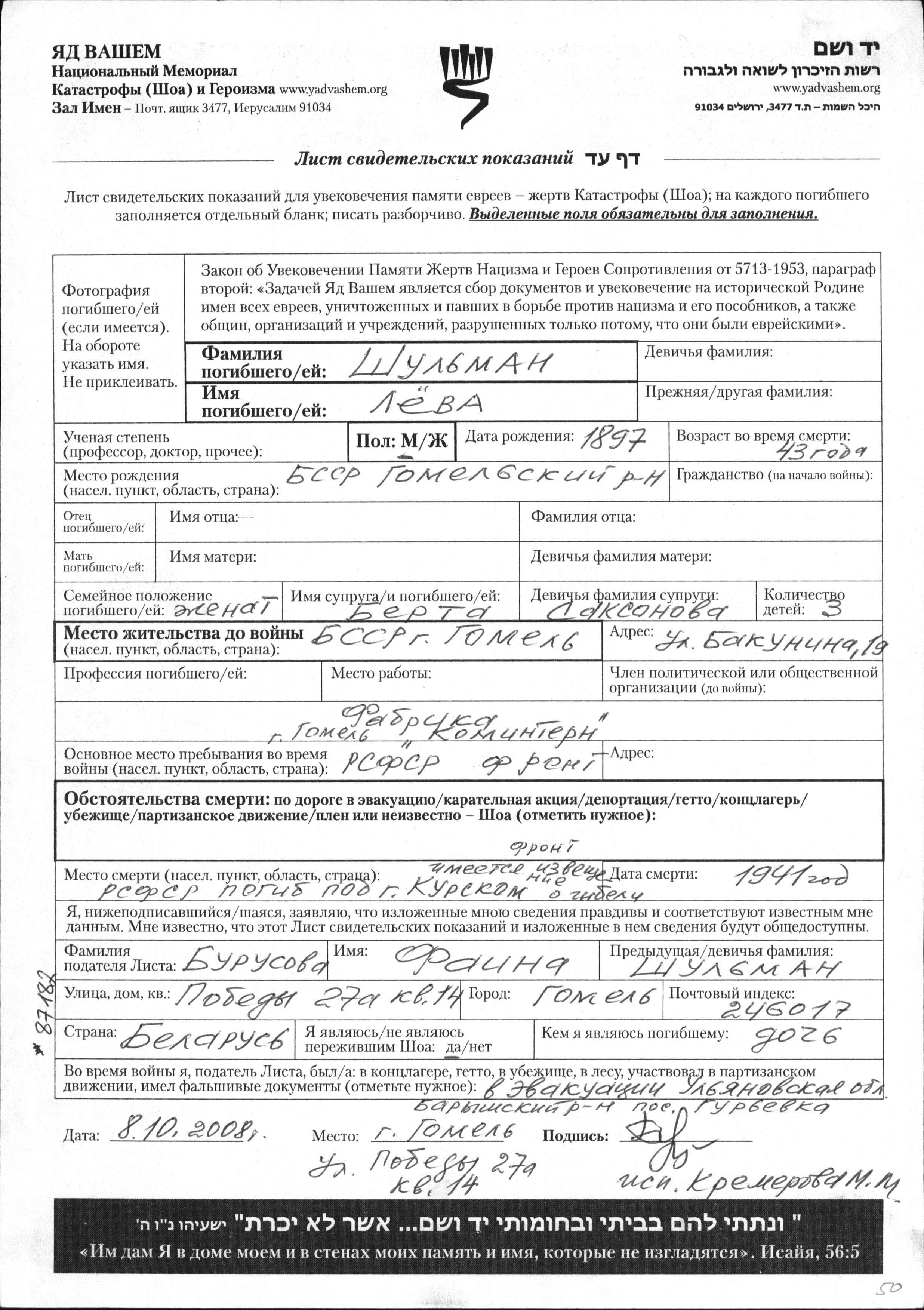 Recherche par date de la mort pendant la période de la Shoah: 1933-1945. Sélectionnez 'Exact'; dans la liste pour rechercher l'année exacte, ou sélectionner '+/- 2 ans'; ou '+/- 5 ans