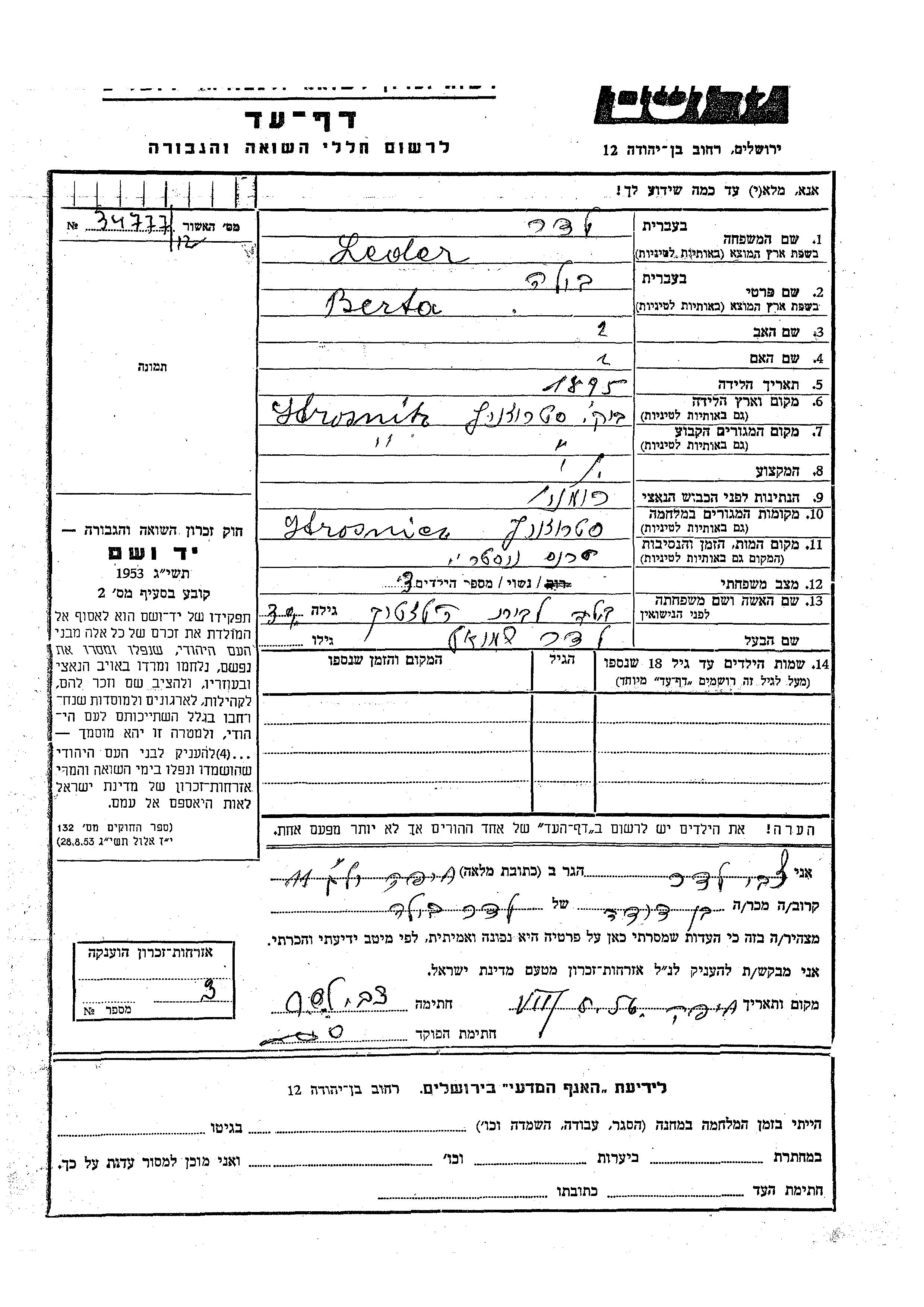 Yad Vashem - Pages of Testimony Names Memorial Collection