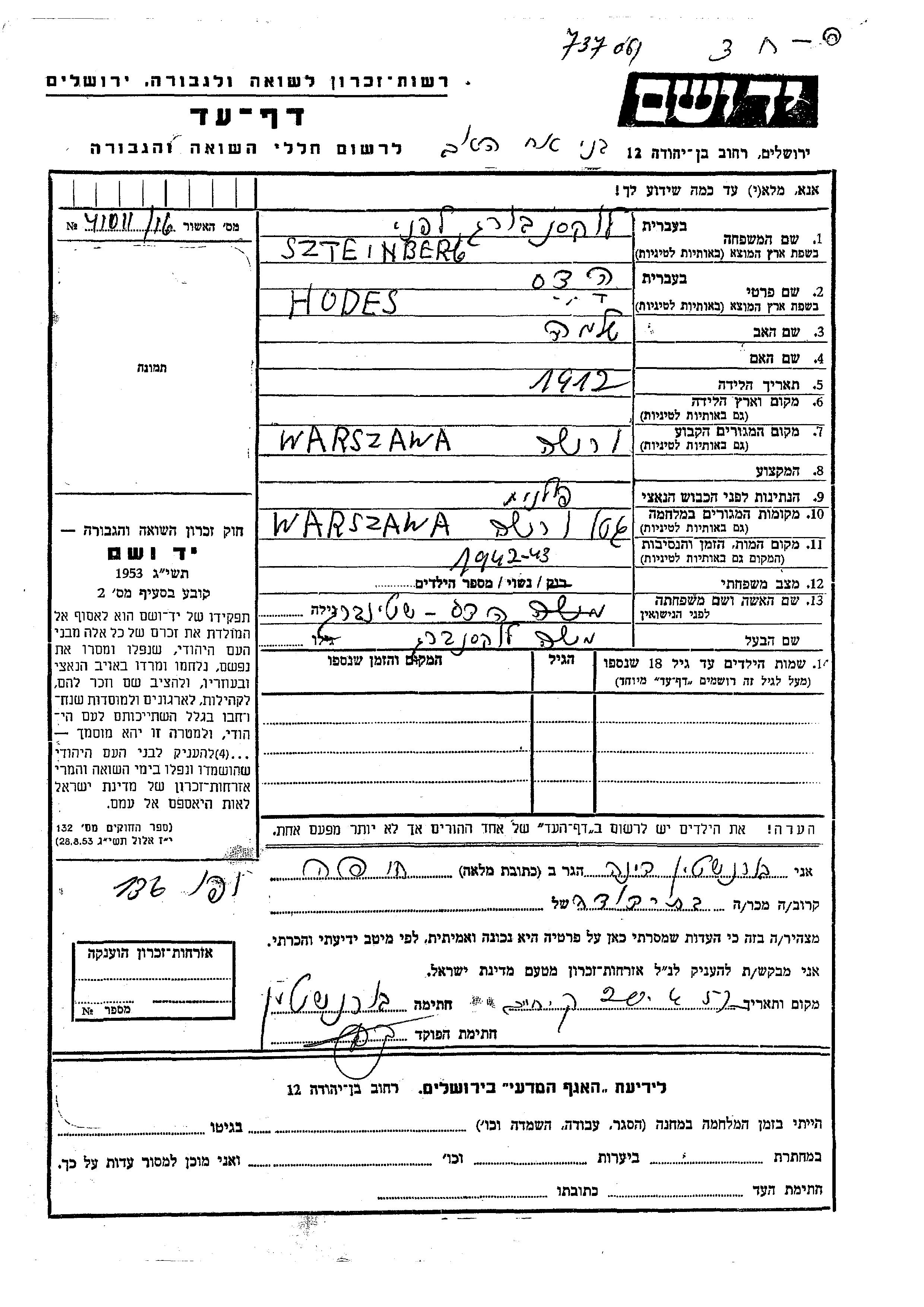 Hudes Luksenburg née Szteinberg est née en 1912, fille de Shlomo. Elle était Mariée à Moshe. Avant la seconde guerre mondiale elle vivait à Warszawa, Pologne. Pendant la guerre, elle était à Warszawa, Pologne.