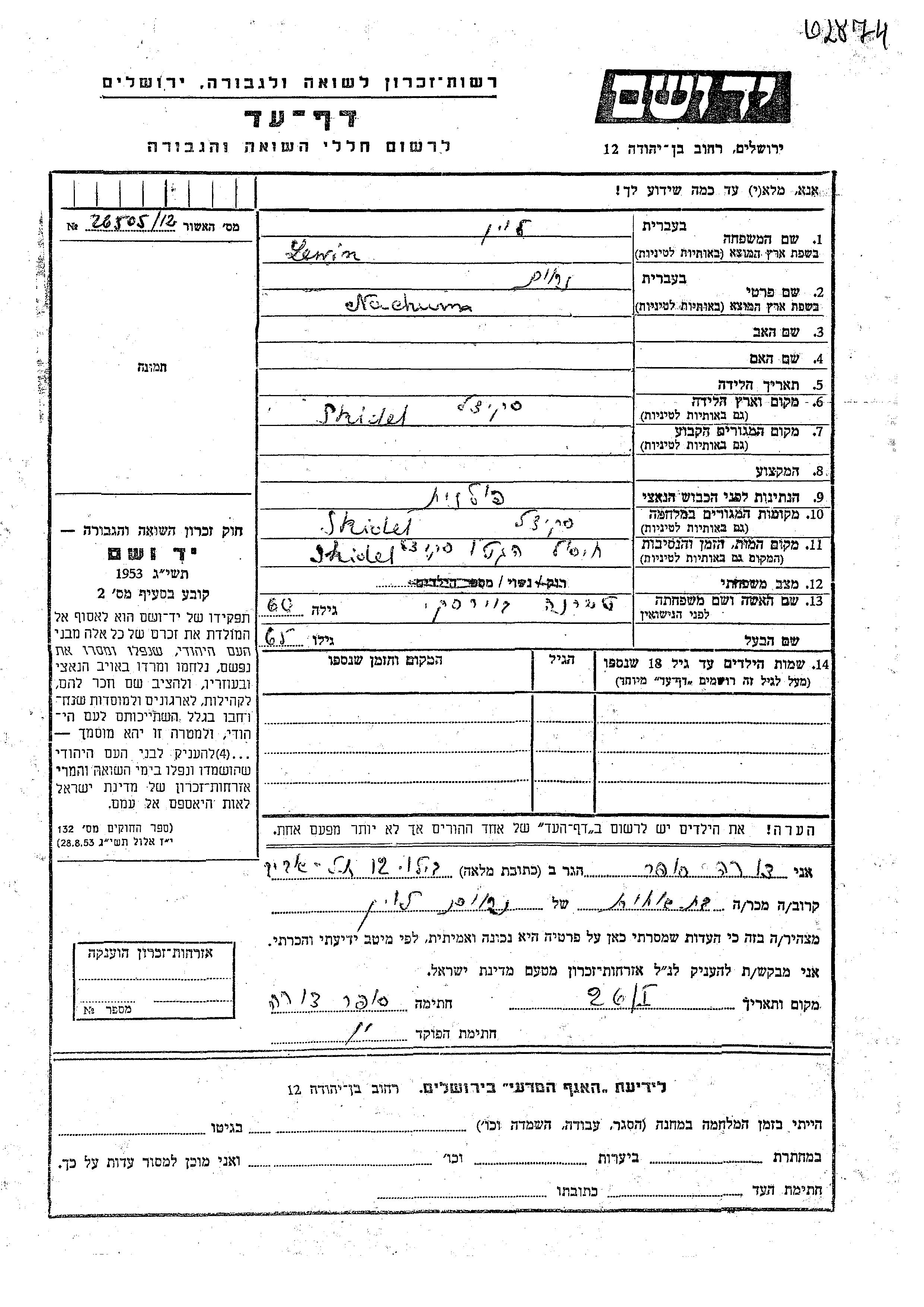 Lewin Nachum endroit inconnu, Feuille de témoignage
