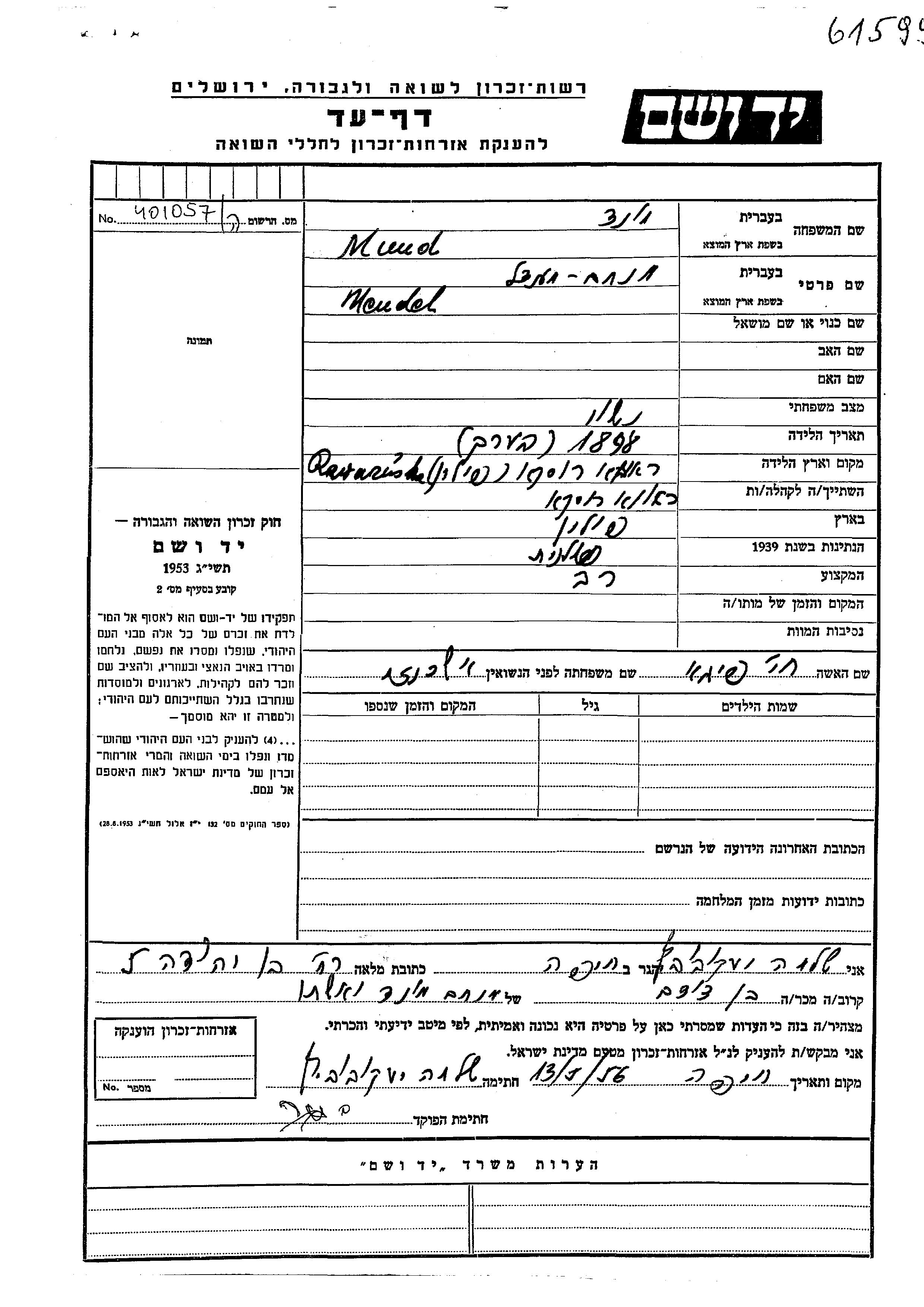 Yad Vashem - Pages of Testimony Names Memorial Collection