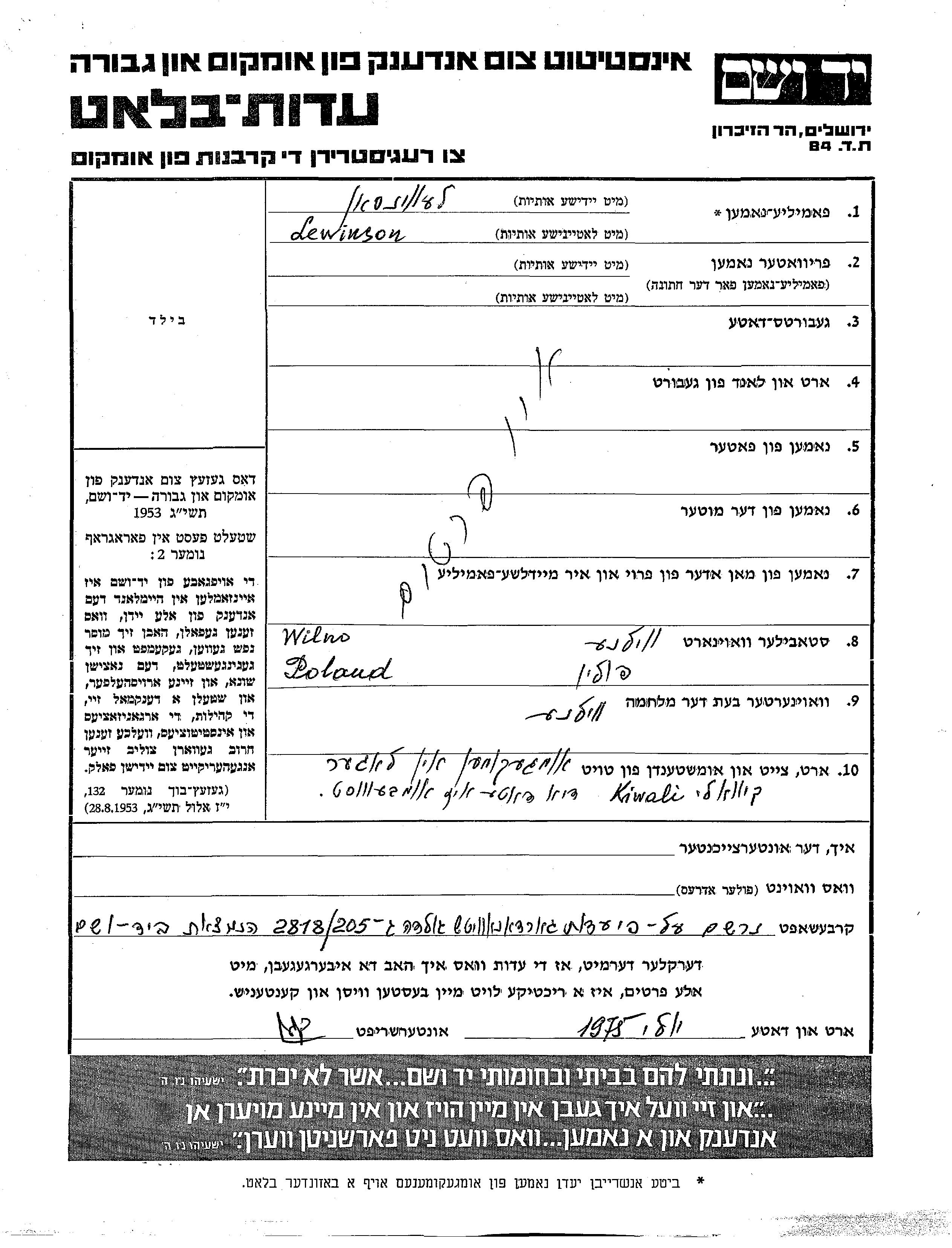 Recherche par date de la mort pendant la période de la Shoah: 1933-1945. Sélectionnez 'Exact'; dans la liste pour rechercher l'année exacte, ou sélectionner '+/- 2 ans'; ou '+/- 5 ans