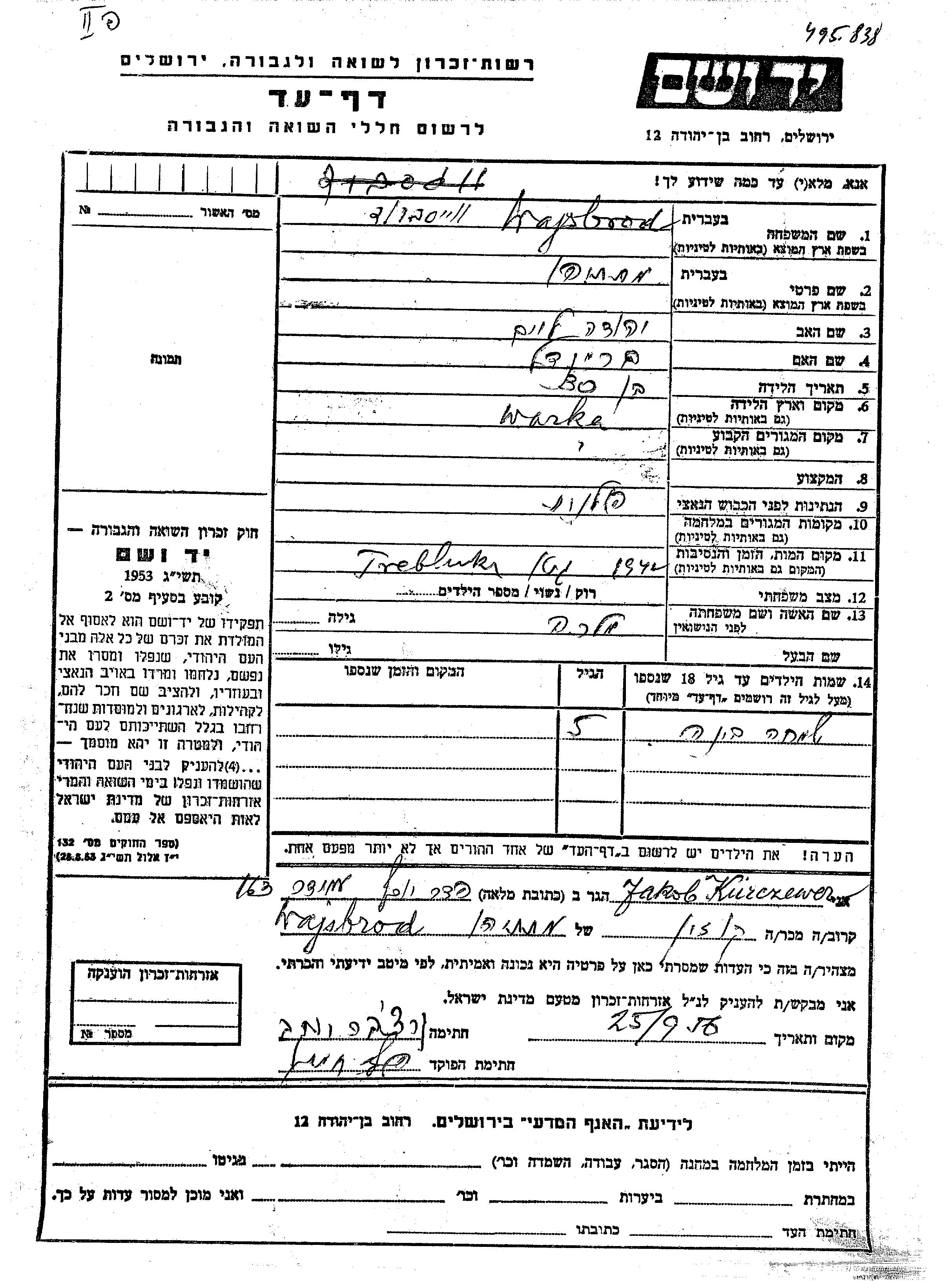 Wajsbrod Matatiahu Warka, Pologne Feuille de témoignage