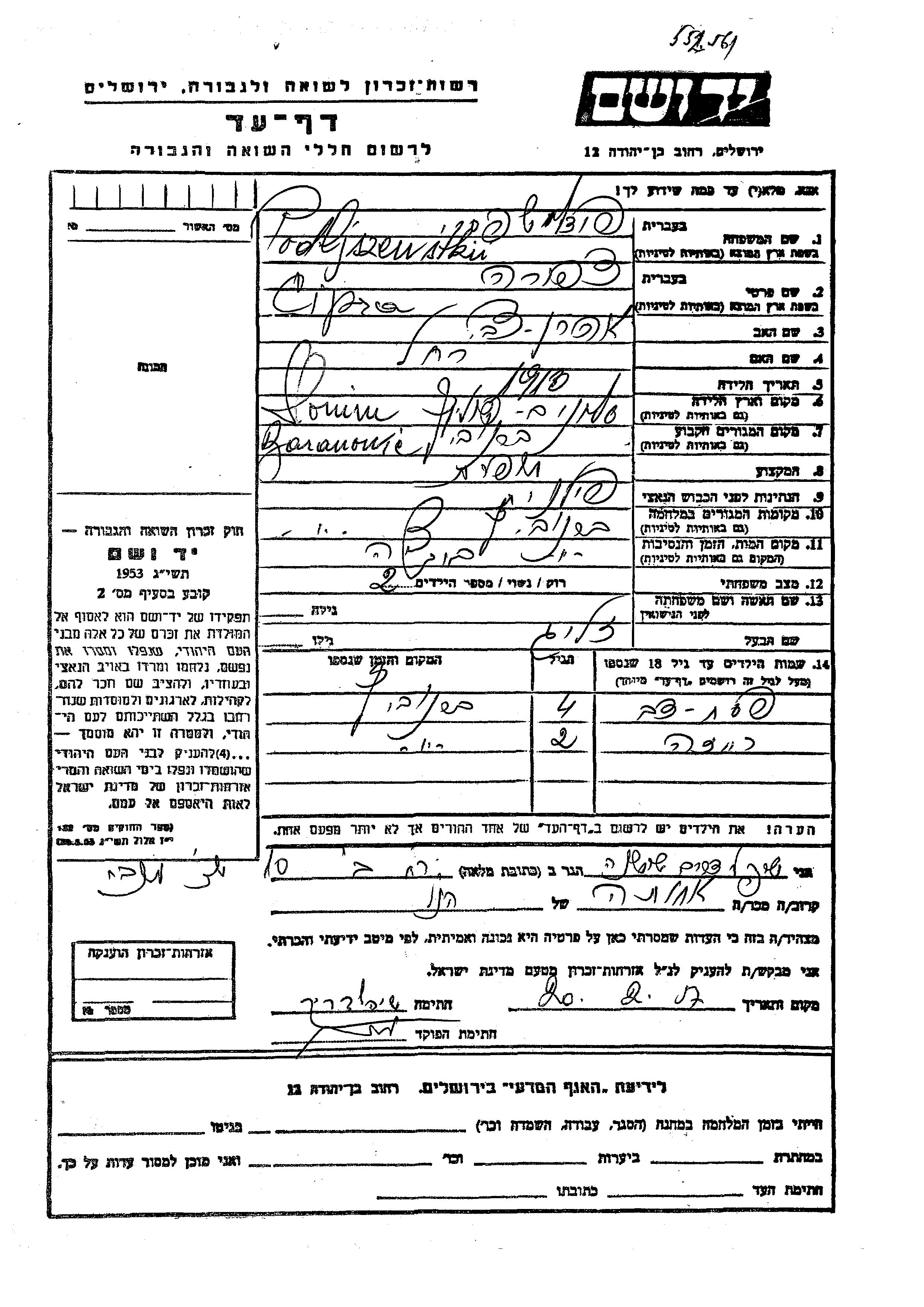 Yad Vashem - Pages of Testimony Names Memorial Collection