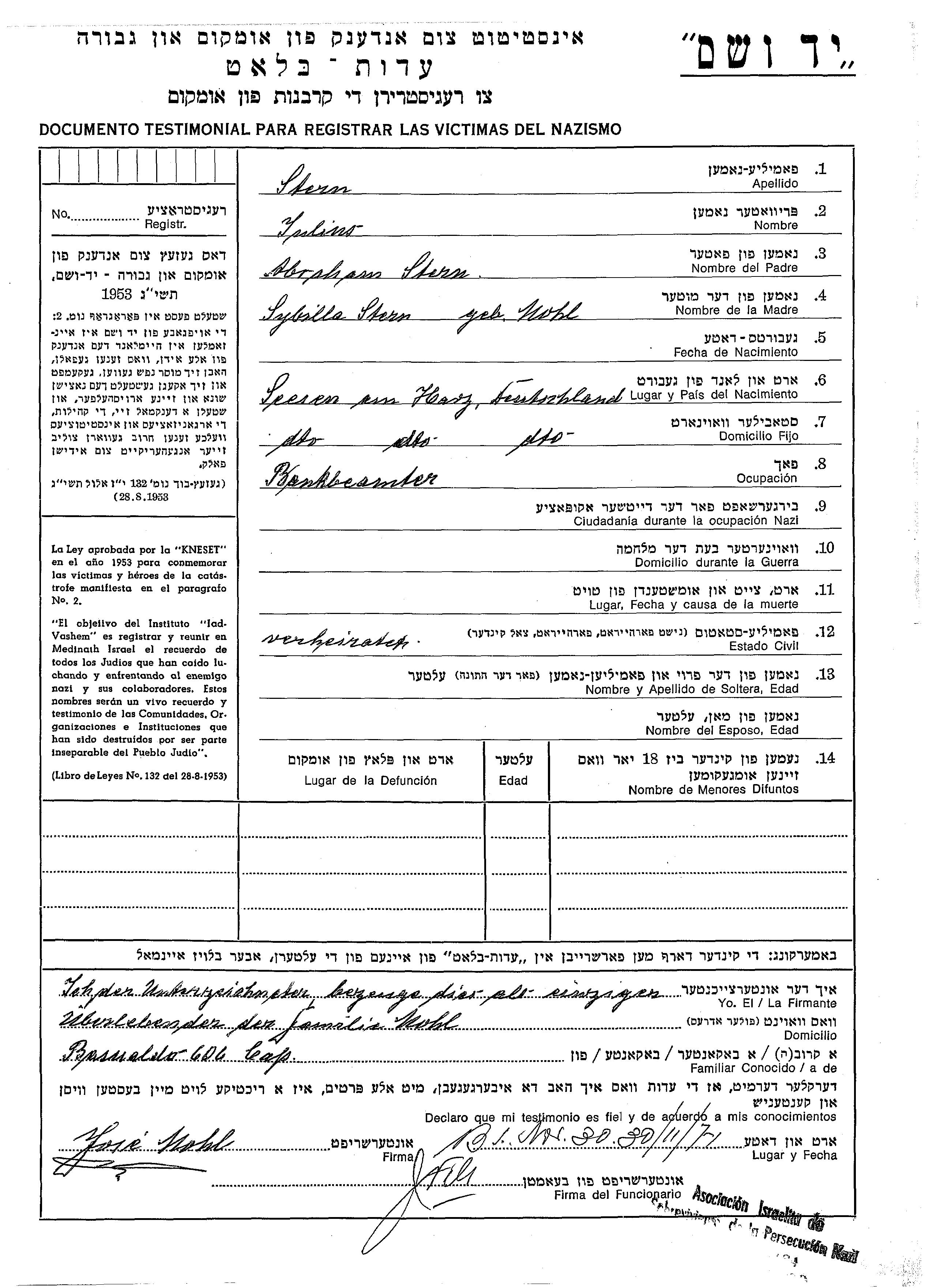 Yad Vashem - Pages of Testimony Names Memorial Collection