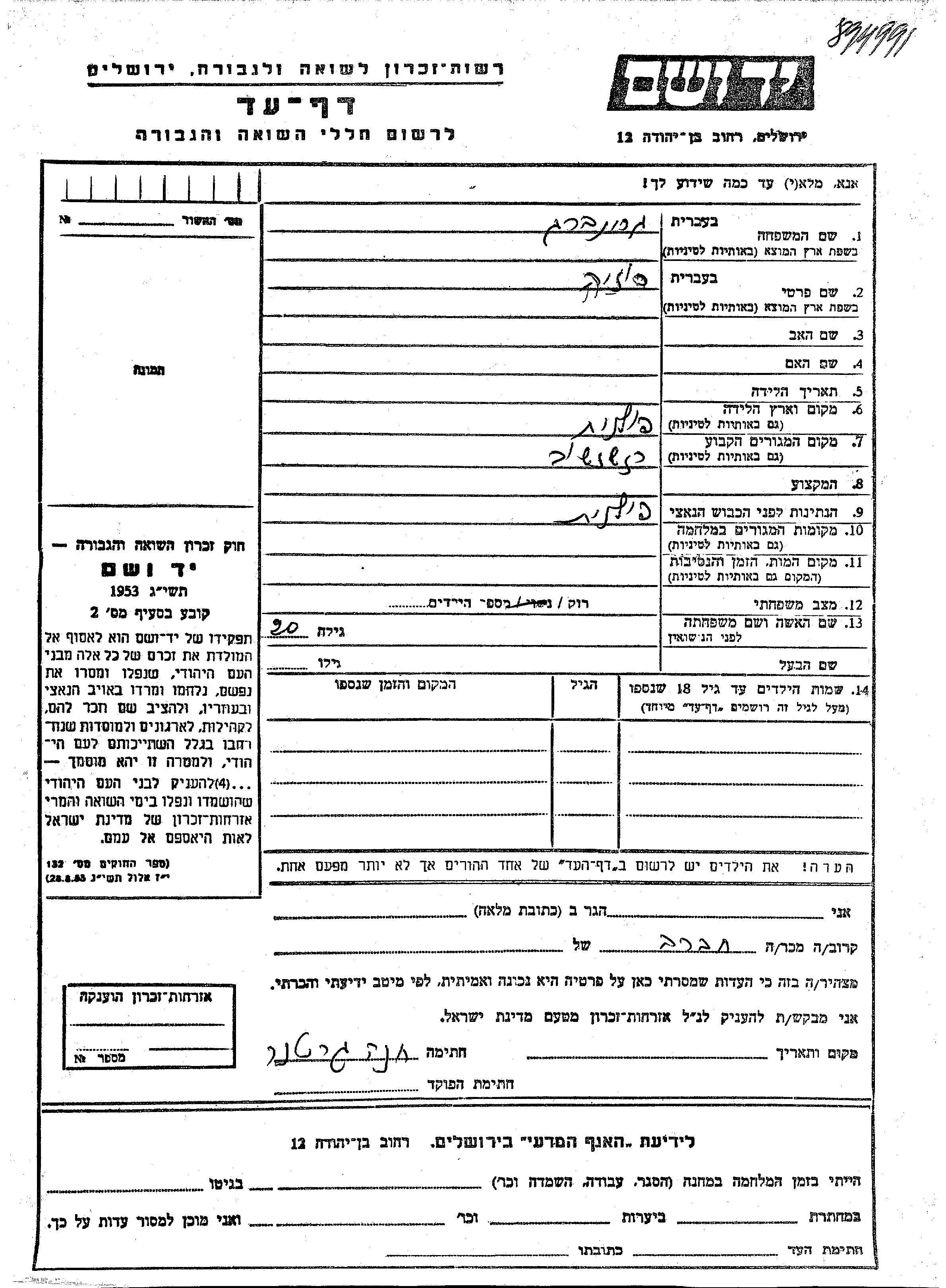 Yad Vashem - Pages of Testimony Names Memorial Collection