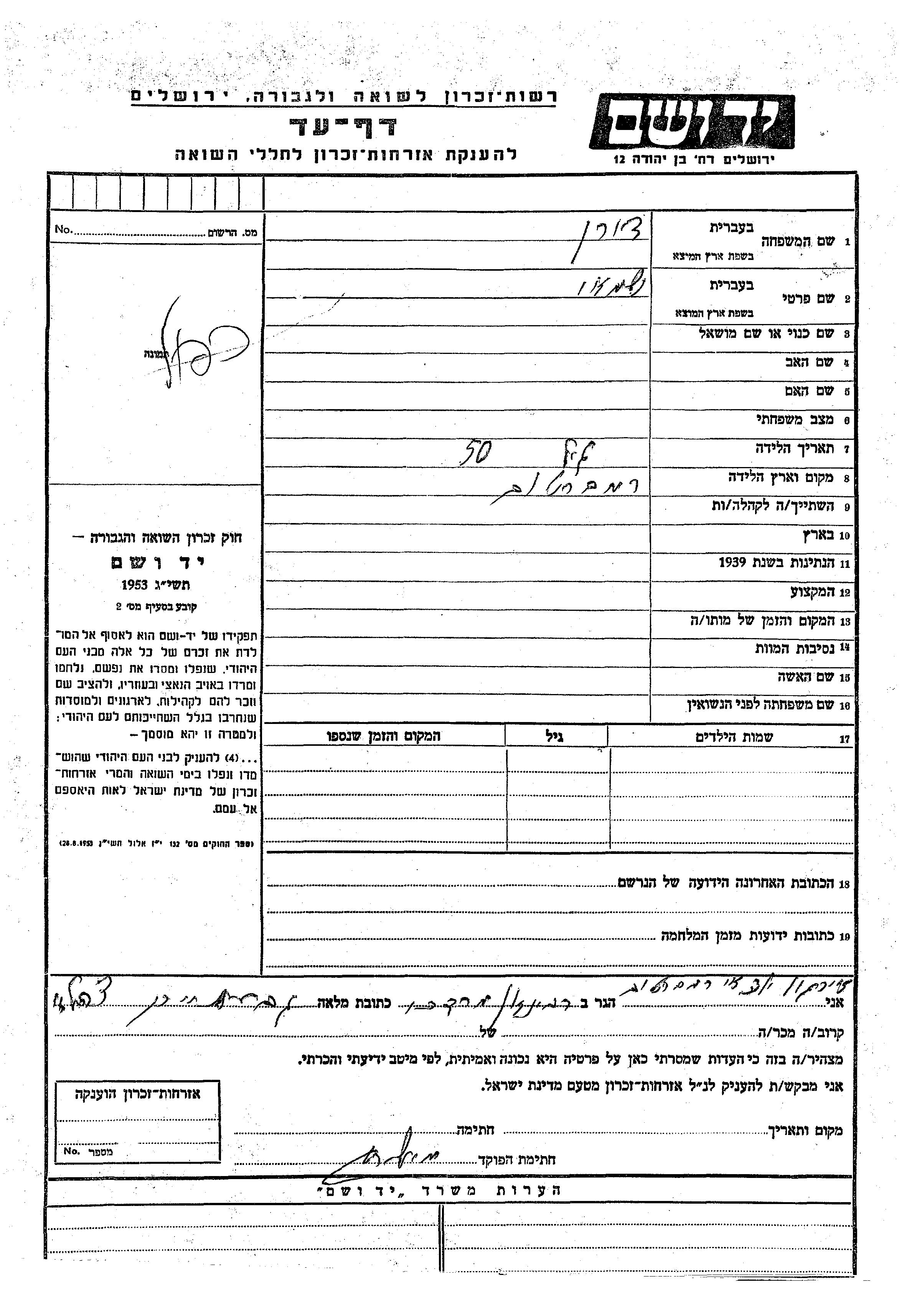 Yad Vashem - Pages of Testimony Names Memorial Collection
