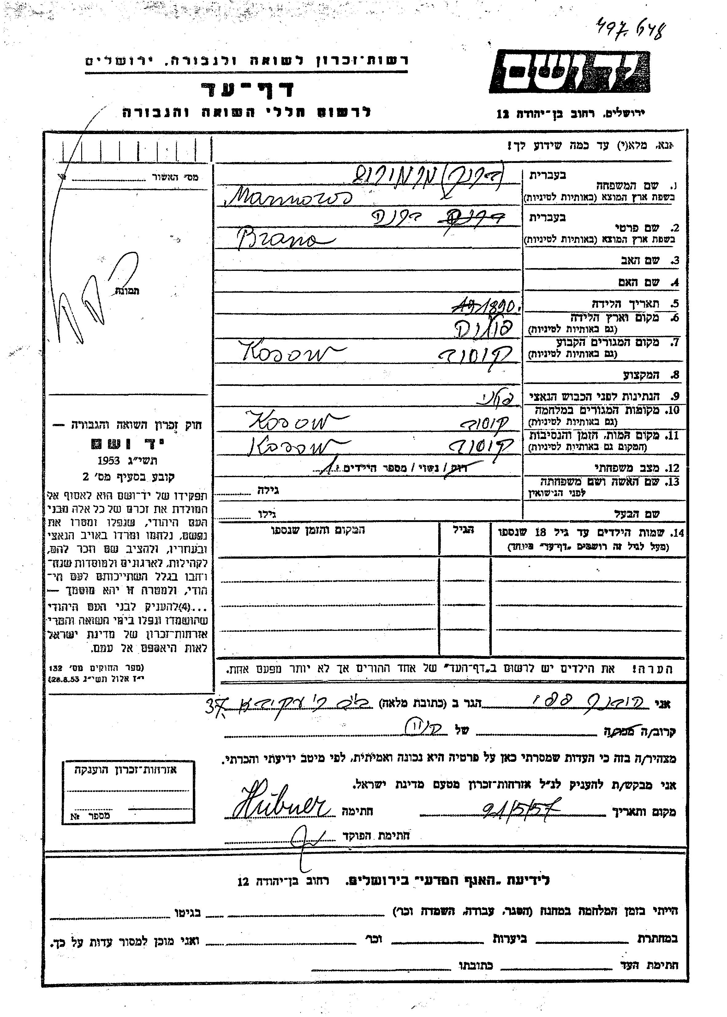 Yad Vashem - Pages of Testimony Names Memorial Collection