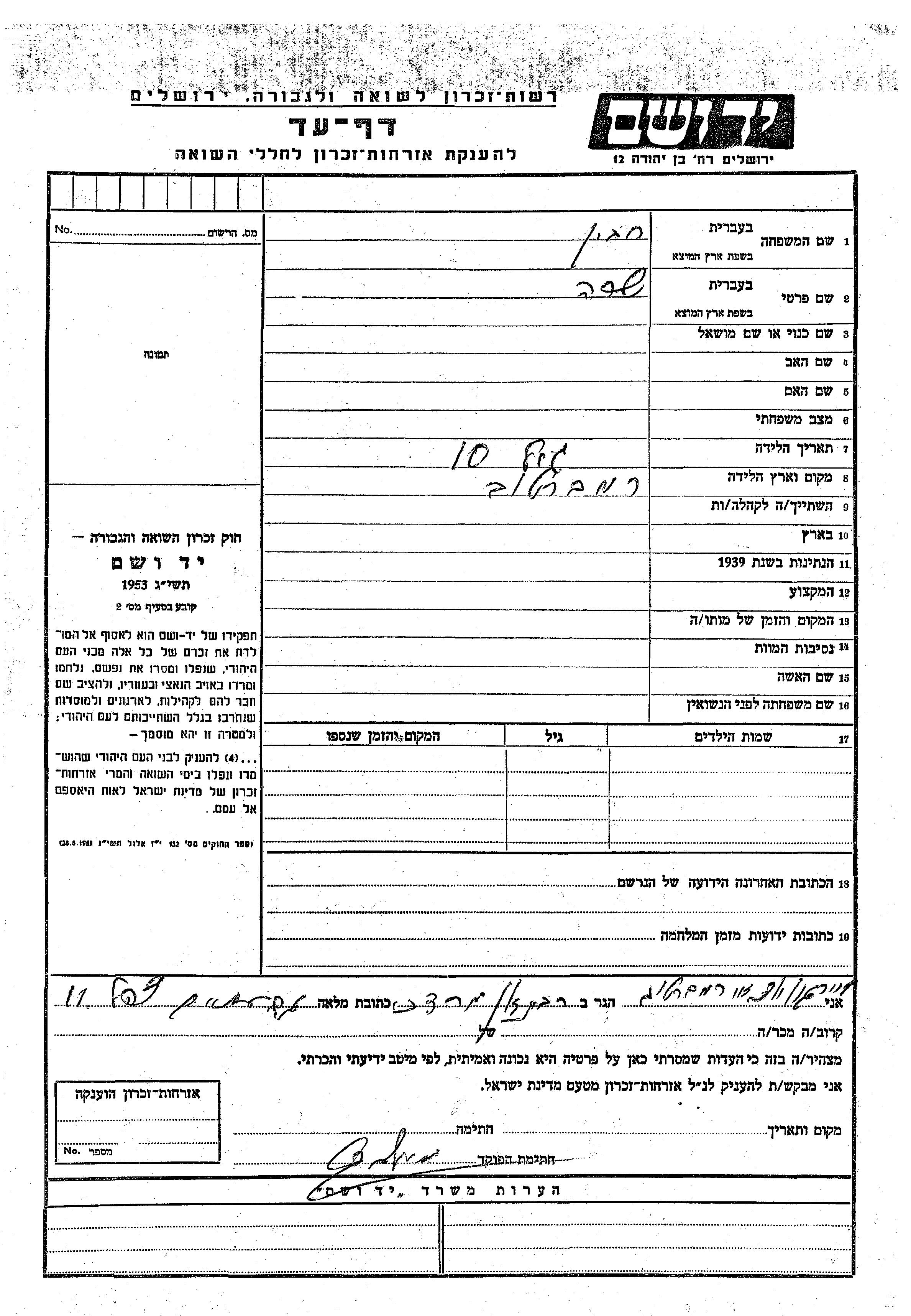 Yad Vashem - Pages of Testimony Names Memorial Collection