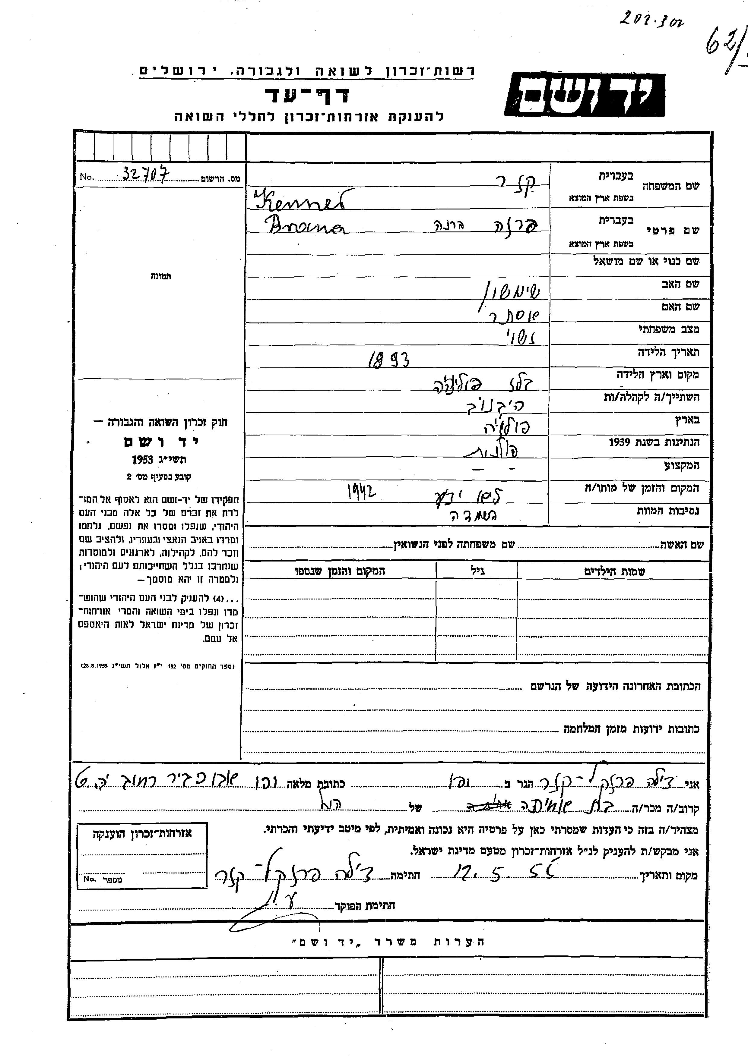Yad Vashem - Pages of Testimony Names Memorial Collection