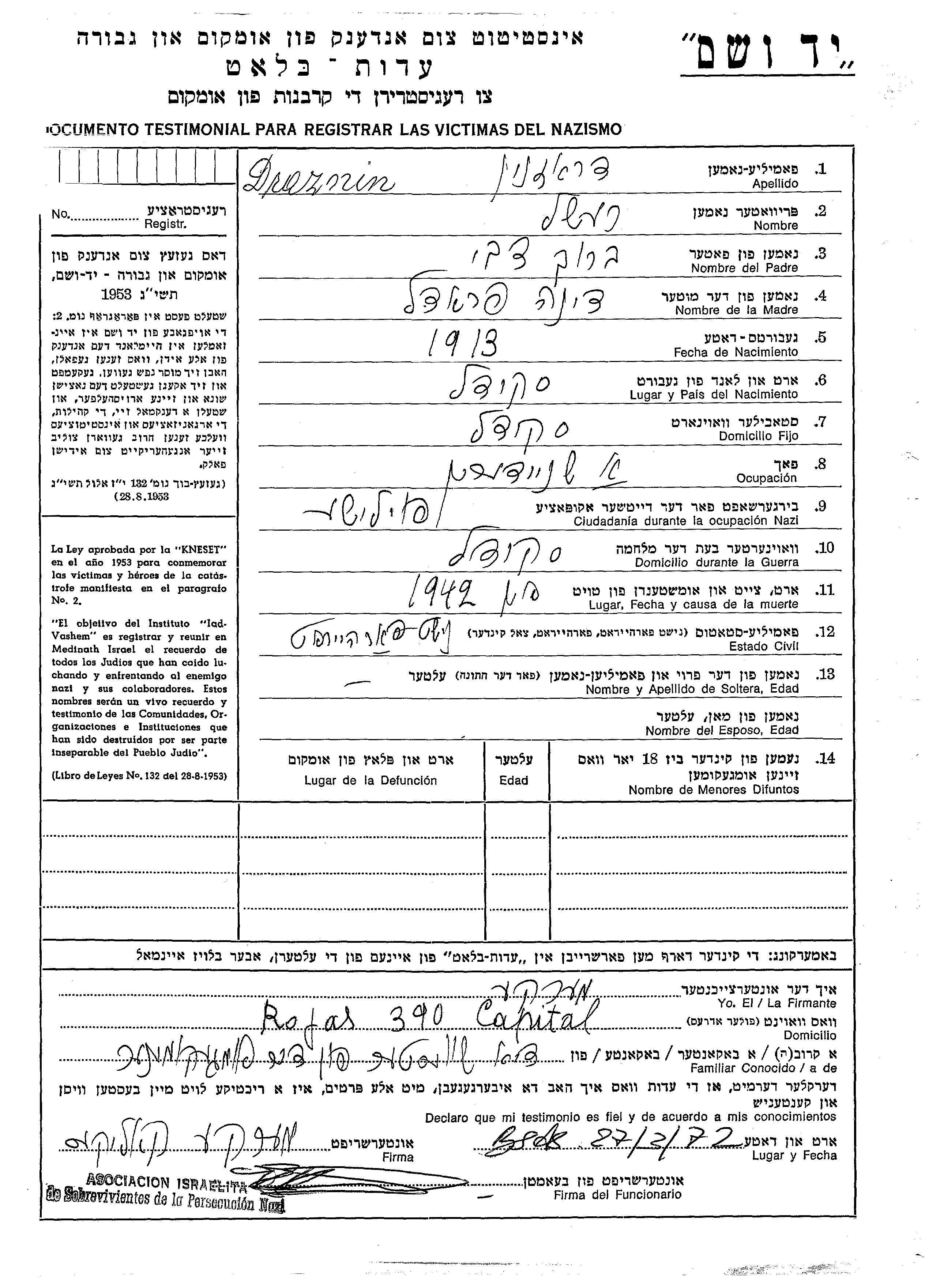 Yad Vashem - Pages of Testimony Names Memorial Collection