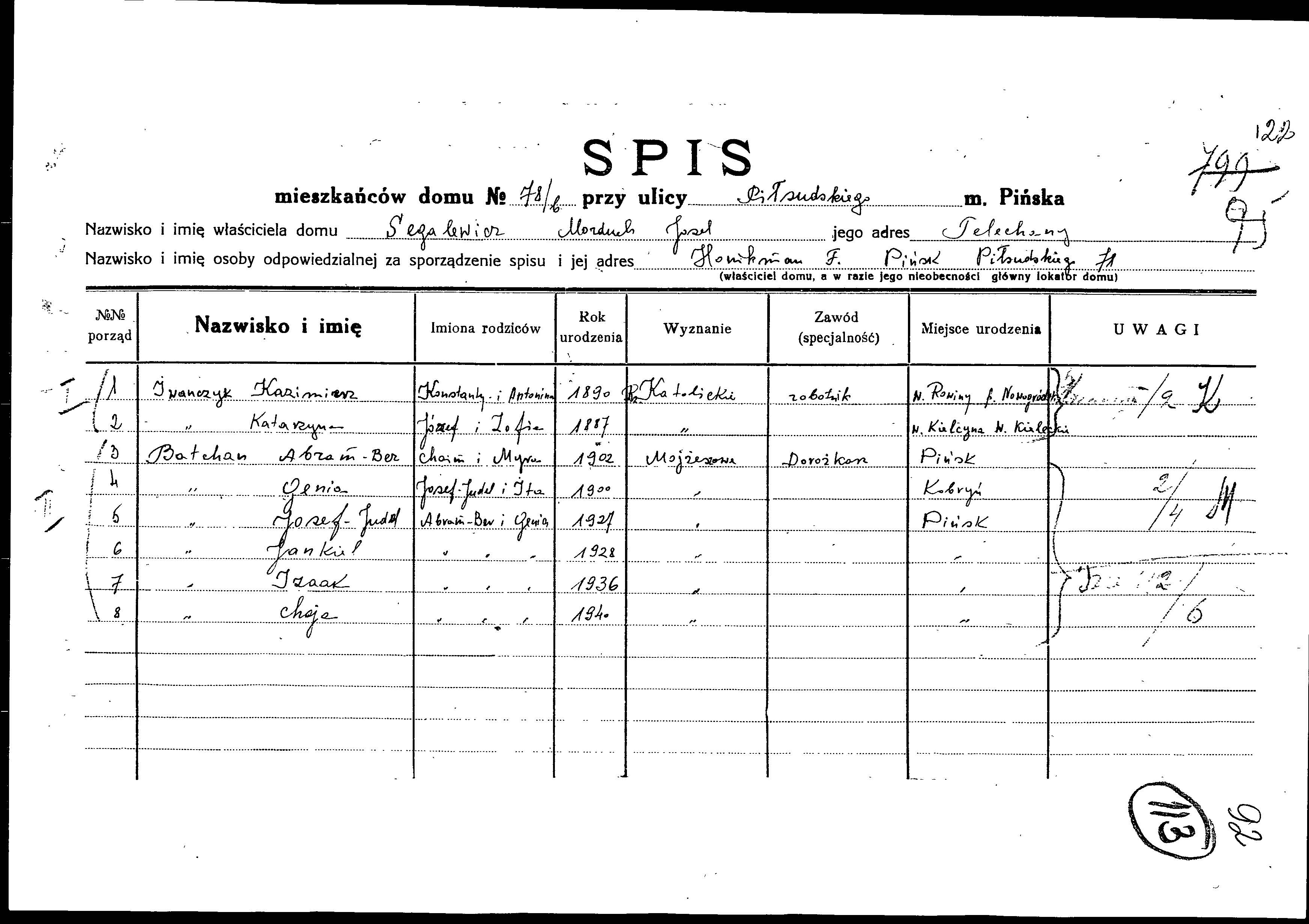 Batchan Jankiel 1928 Pinsk, Pologne Liste de personnes persécutées