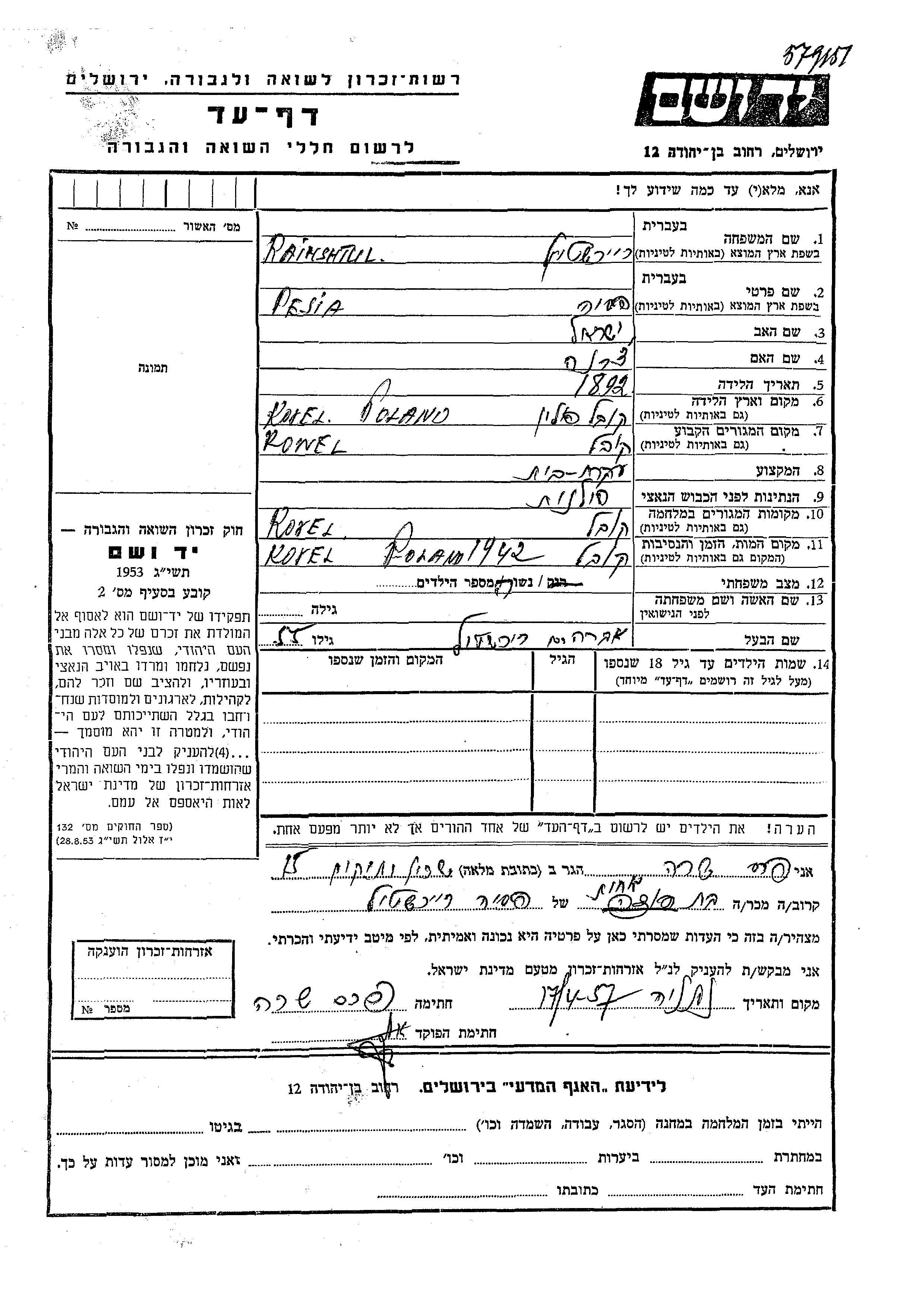 Yad Vashem - Pages of Testimony Names Memorial Collection