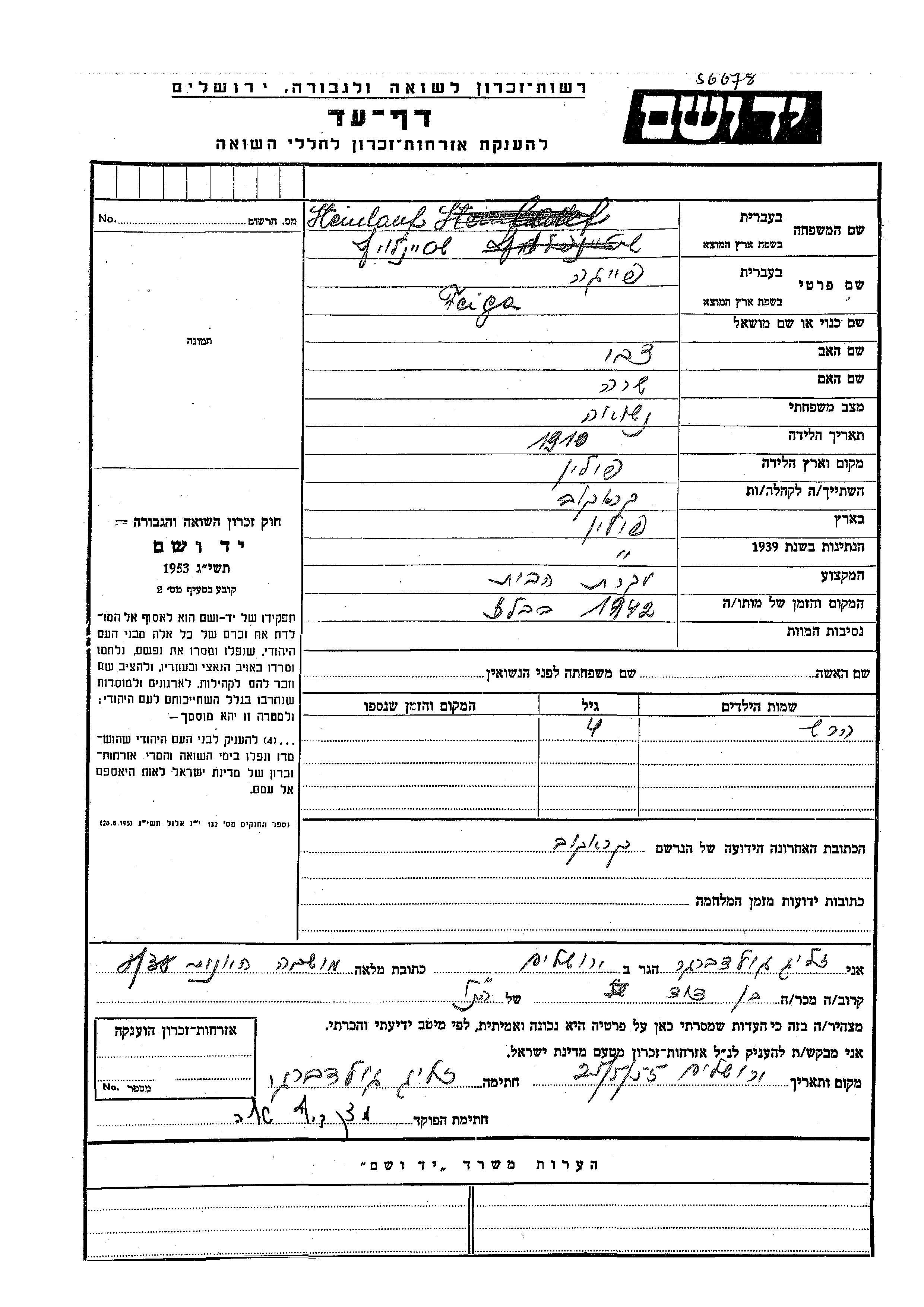 Yad Vashem - Pages of Testimony Names Memorial Collection