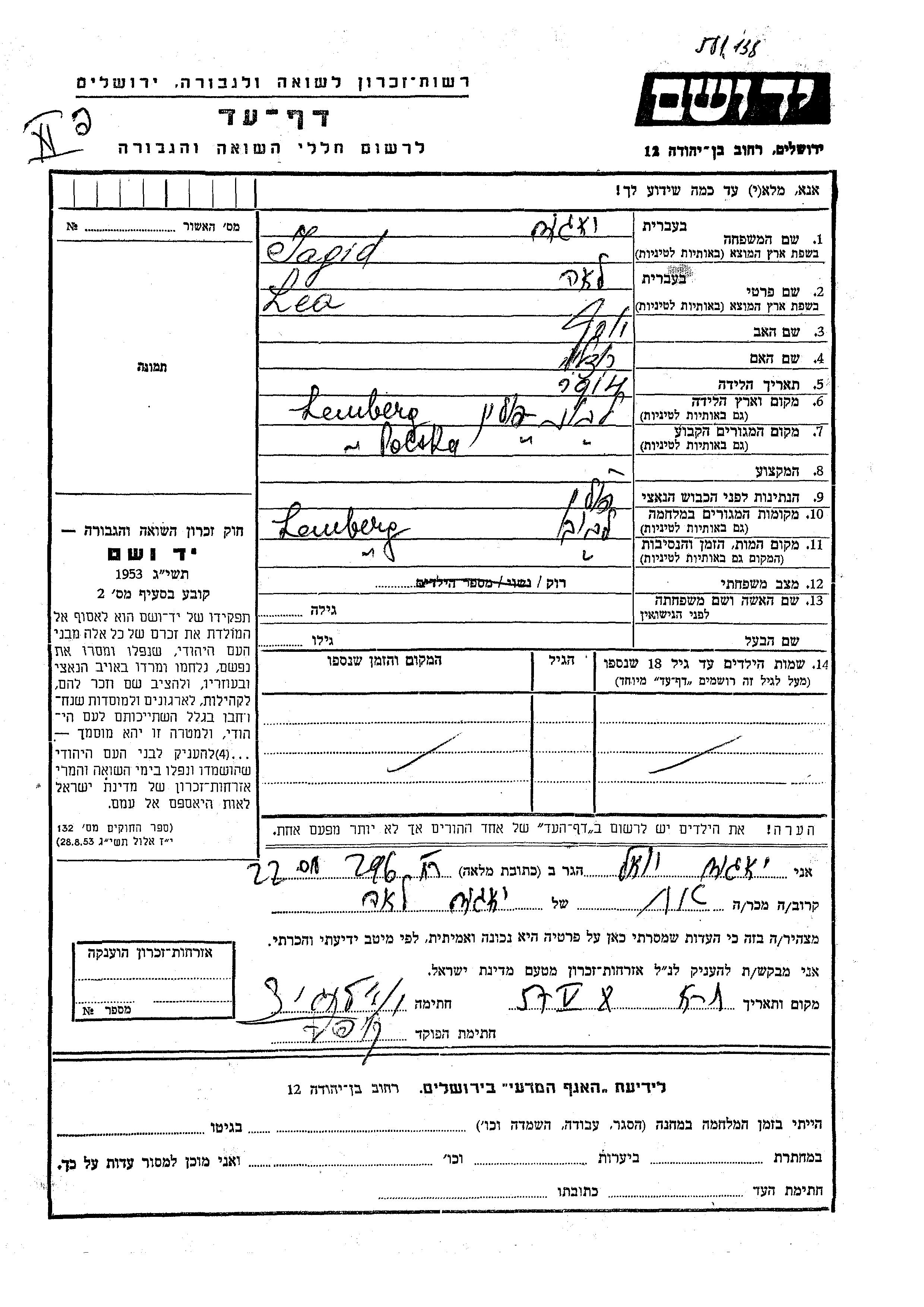 Lea a été assassinée pendant la Shoah. Lieu de la mort: Lwow, Pologne.