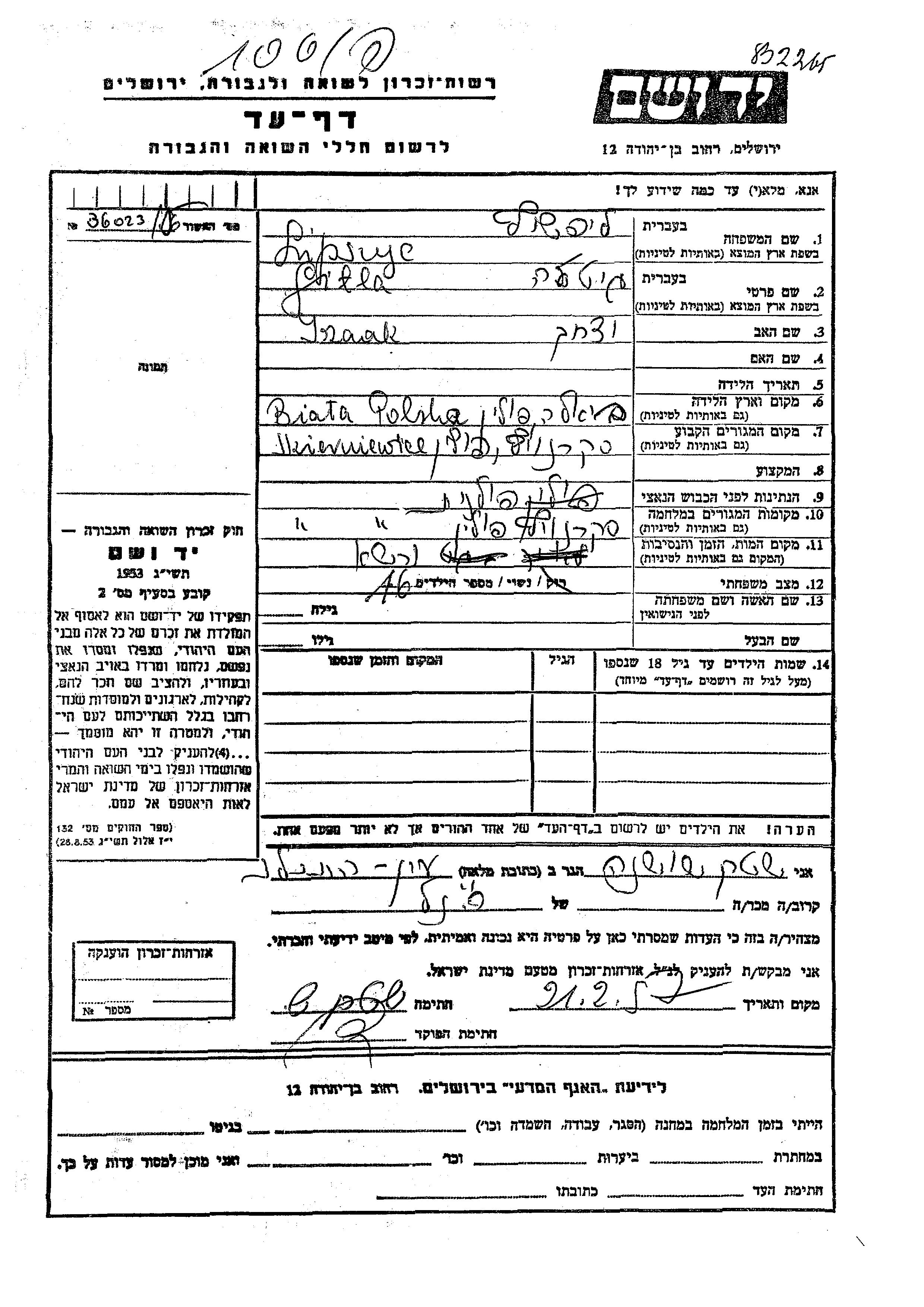 Yad Vashem - Pages of Testimony Names Memorial Collection
