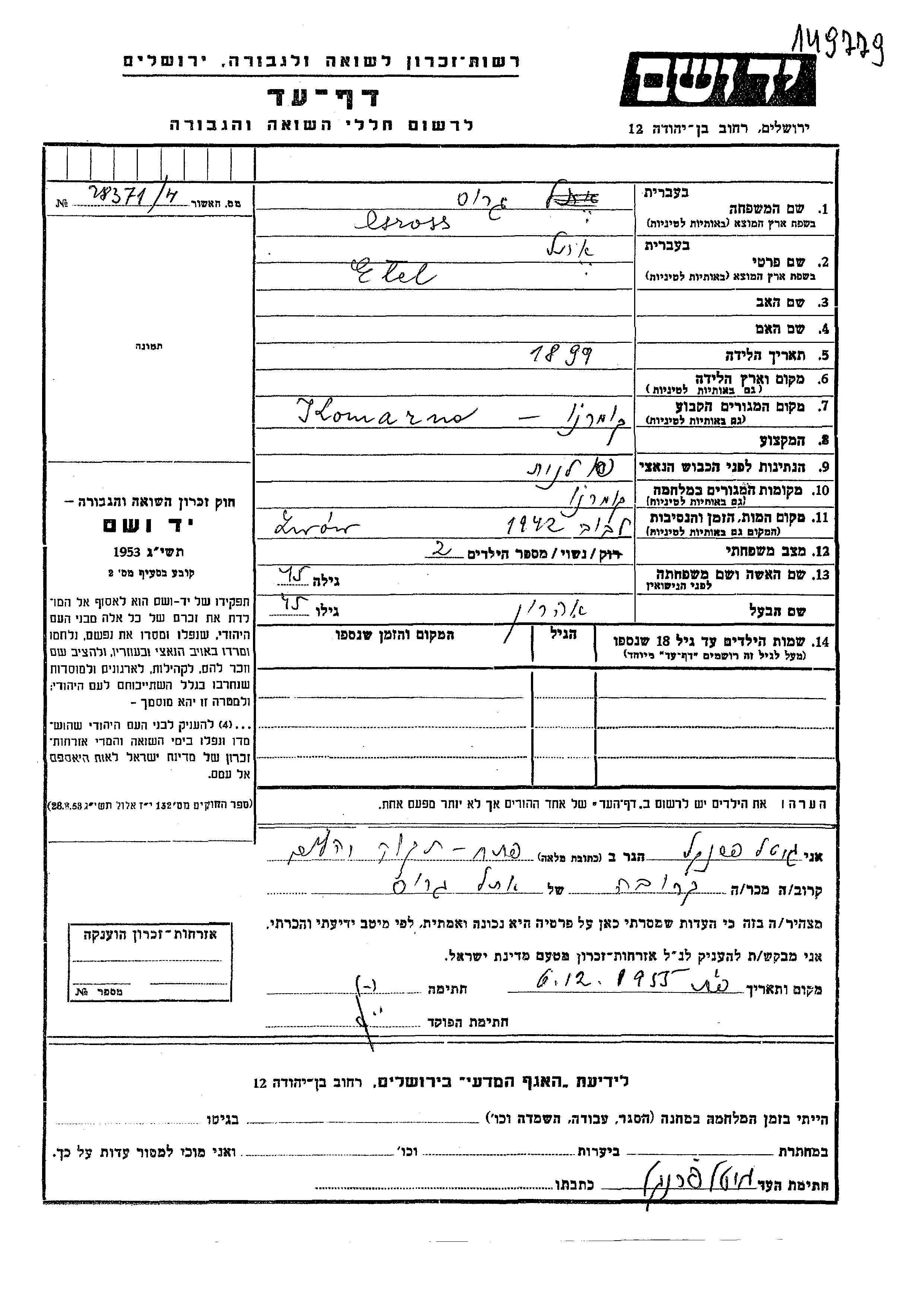Yad Vashem - Pages of Testimony Names Memorial Collection