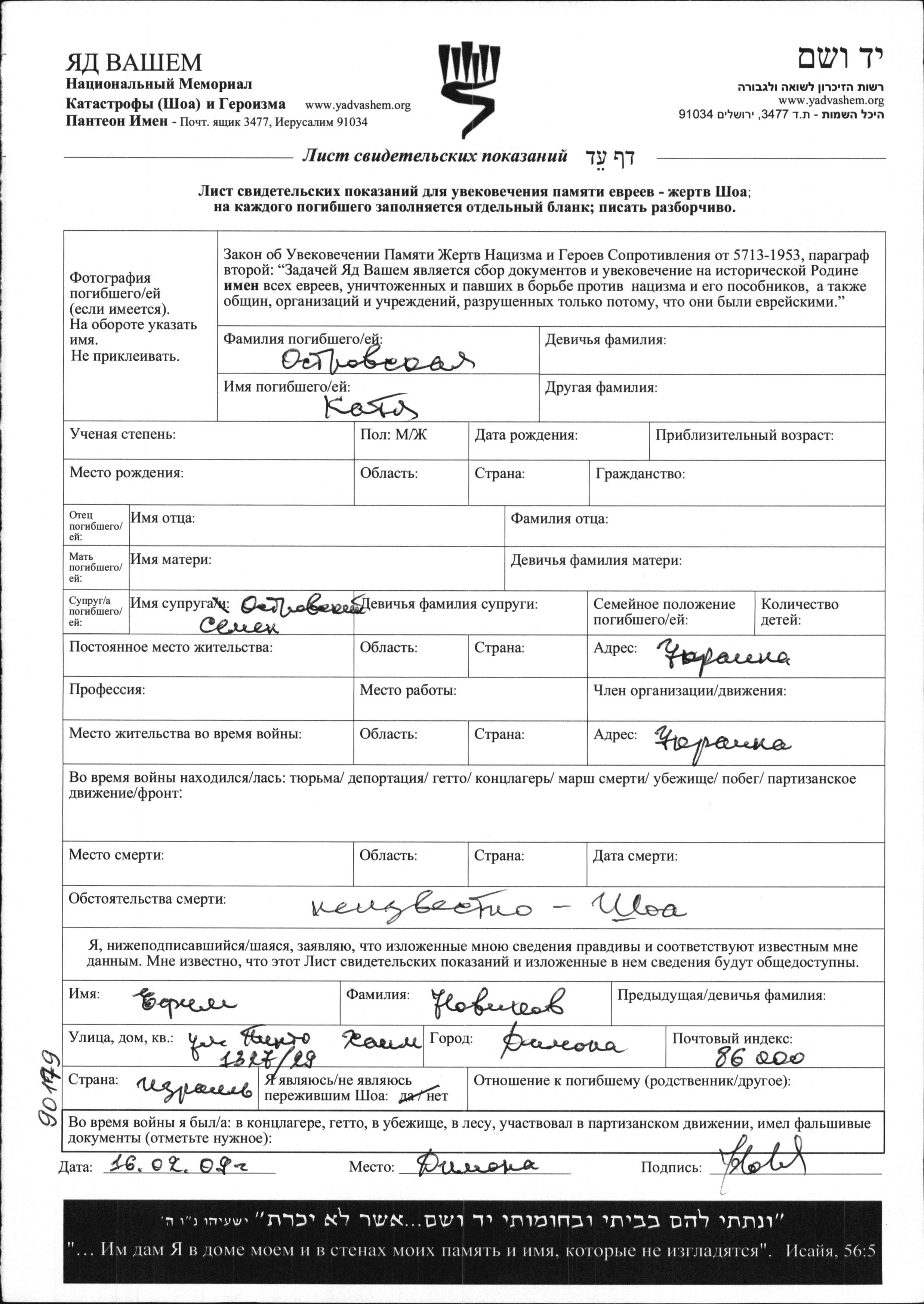 Yad Vashem - Pages of Testimony Names Memorial Collection