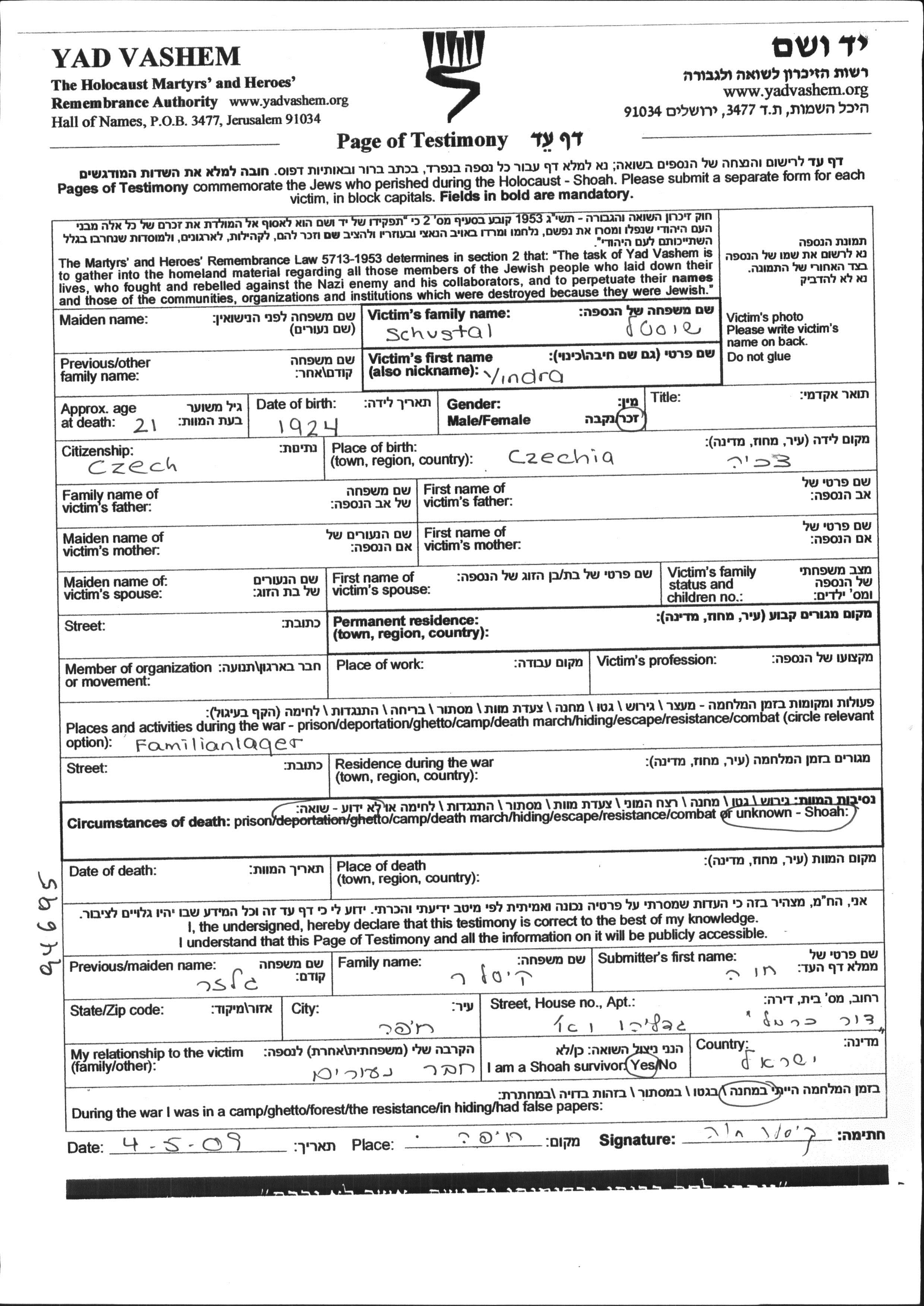 Yad Vashem - Pages of Testimony Names Memorial Collection