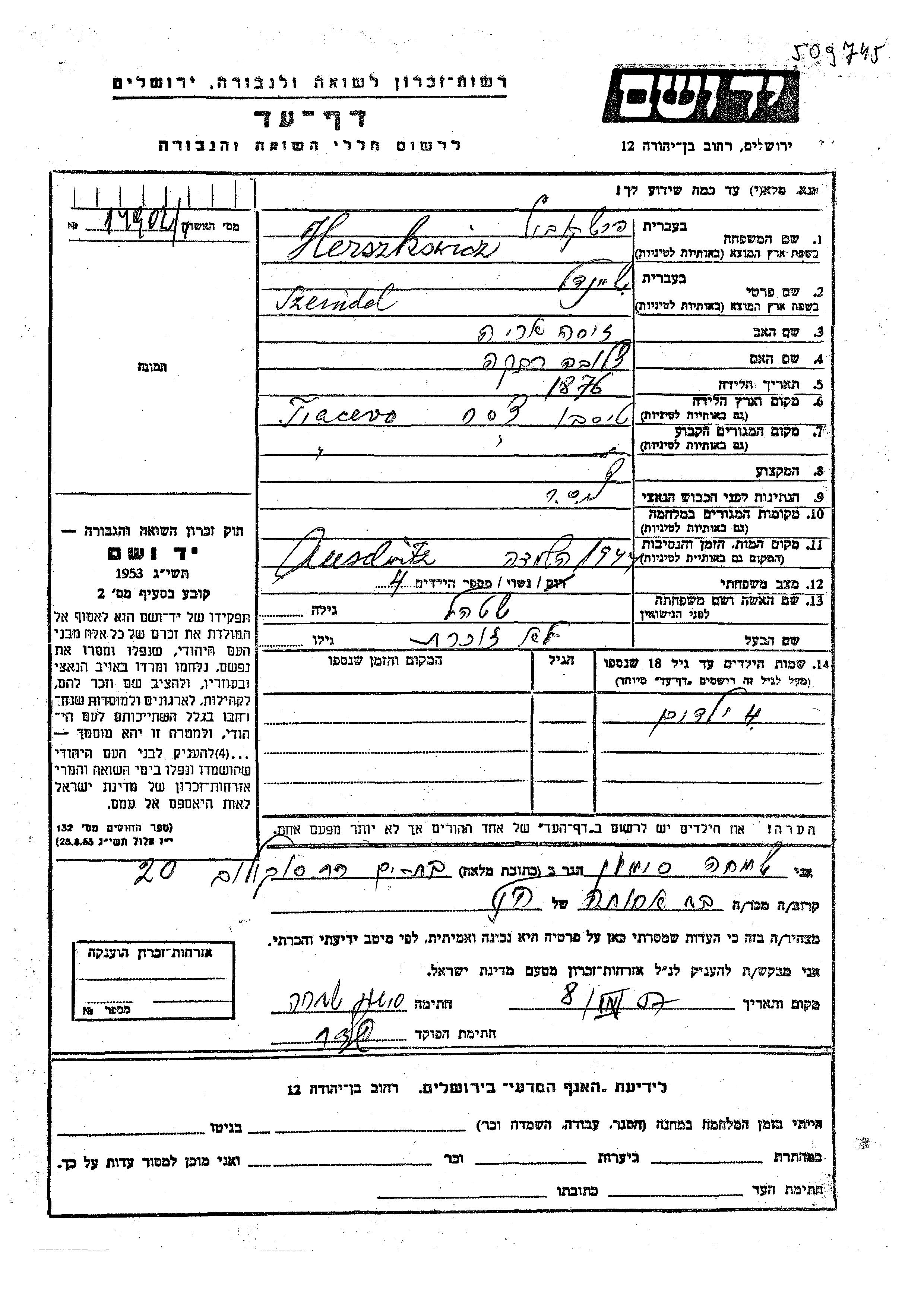 Yad Vashem - Pages of Testimony Names Memorial Collection