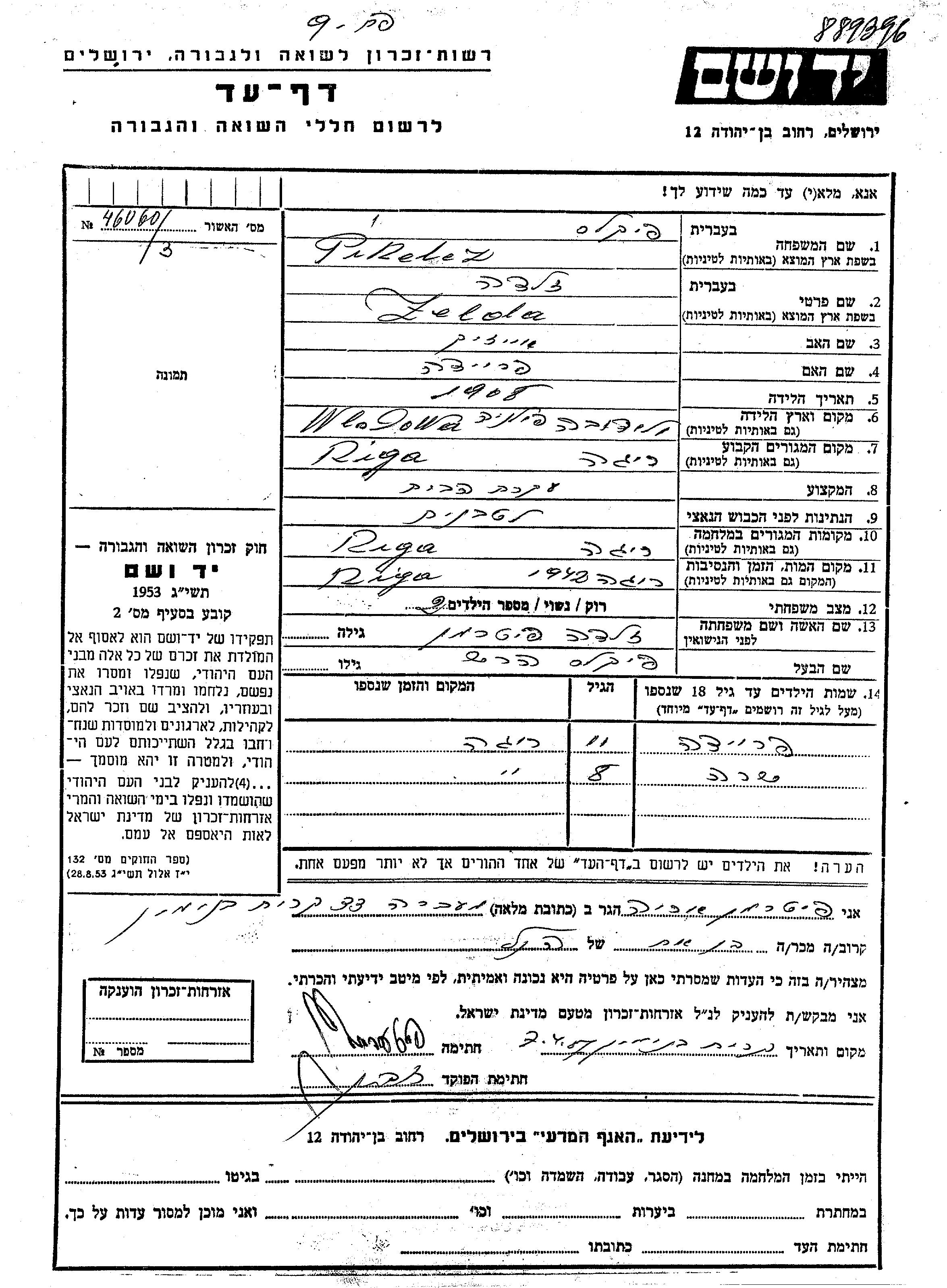 Yad Vashem - Pages of Testimony Names Memorial Collection