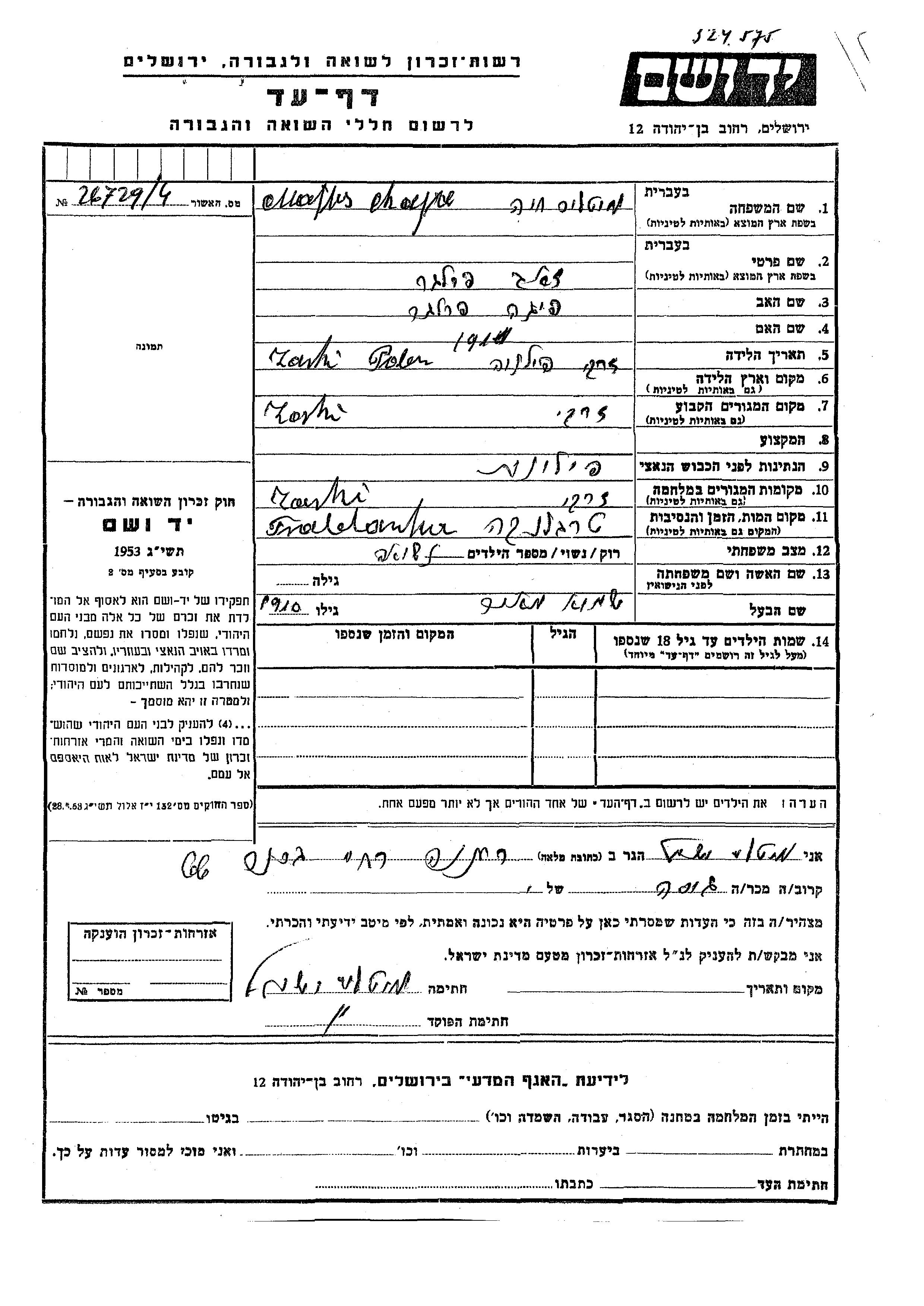 Yad Vashem - Pages of Testimony Names Memorial Collection