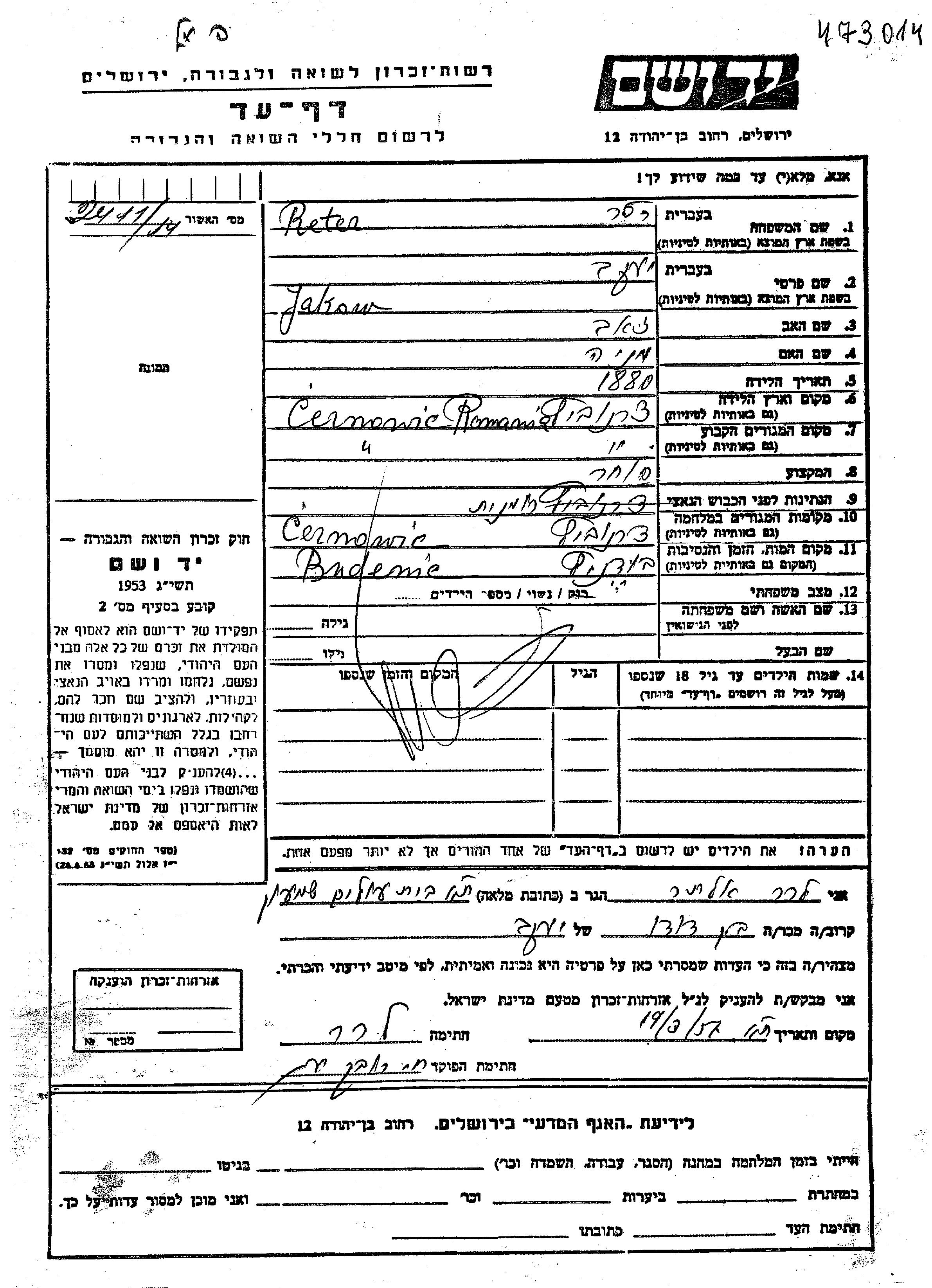 Yad Vashem - Pages of Testimony Names Memorial Collection