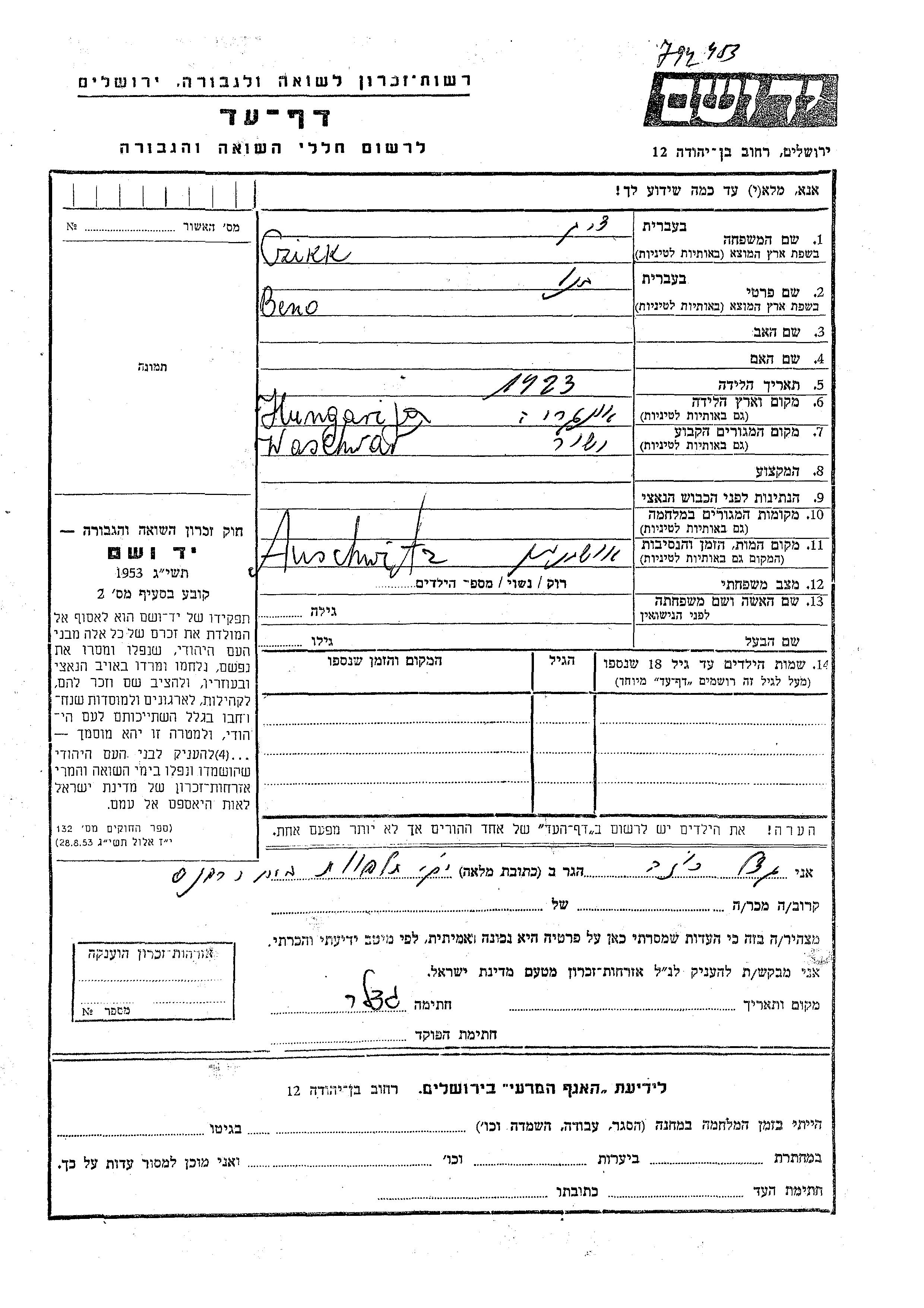 Yad Vashem - Pages of Testimony Names Memorial Collection