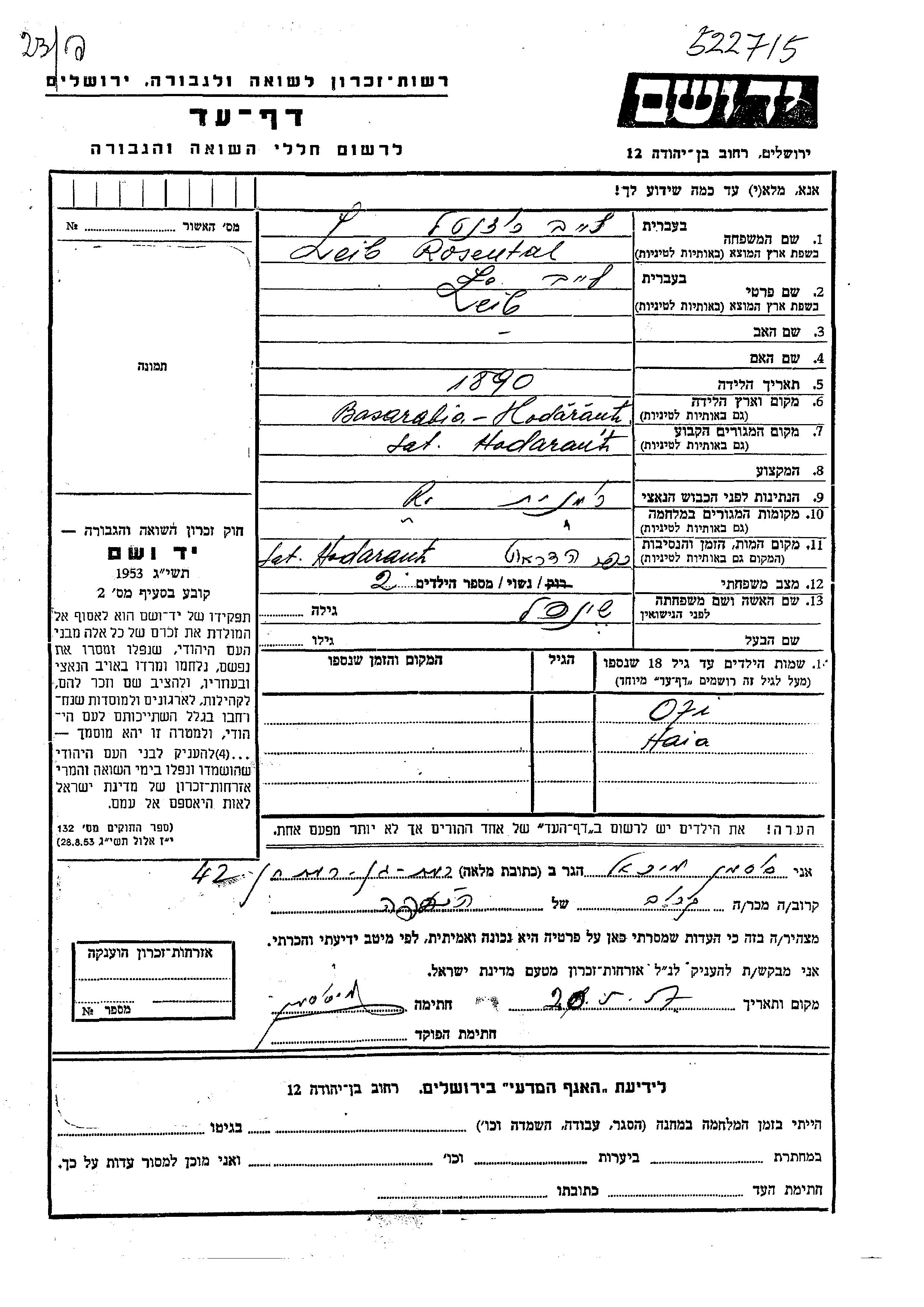 Ozi Rosental est né fils de Leib et de Sheindl. Il était Enfant. Avant la seconde guerre mondiale il vivait à Hodarauti, Roumanie. Au cours de la guerre, il était à Hodarauti, Roumanie.