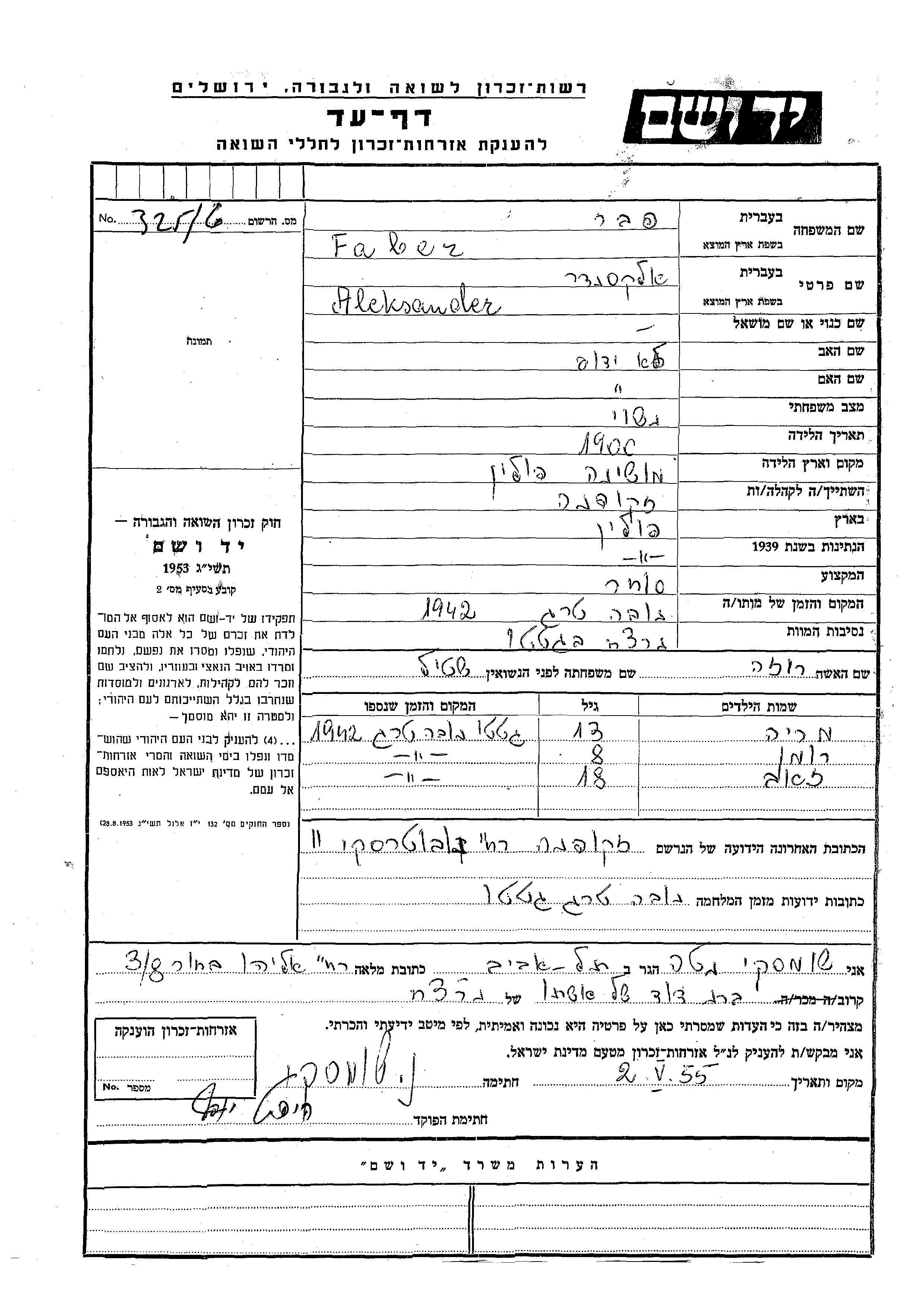 Yad Vashem - Pages of Testimony Names Memorial Collection
