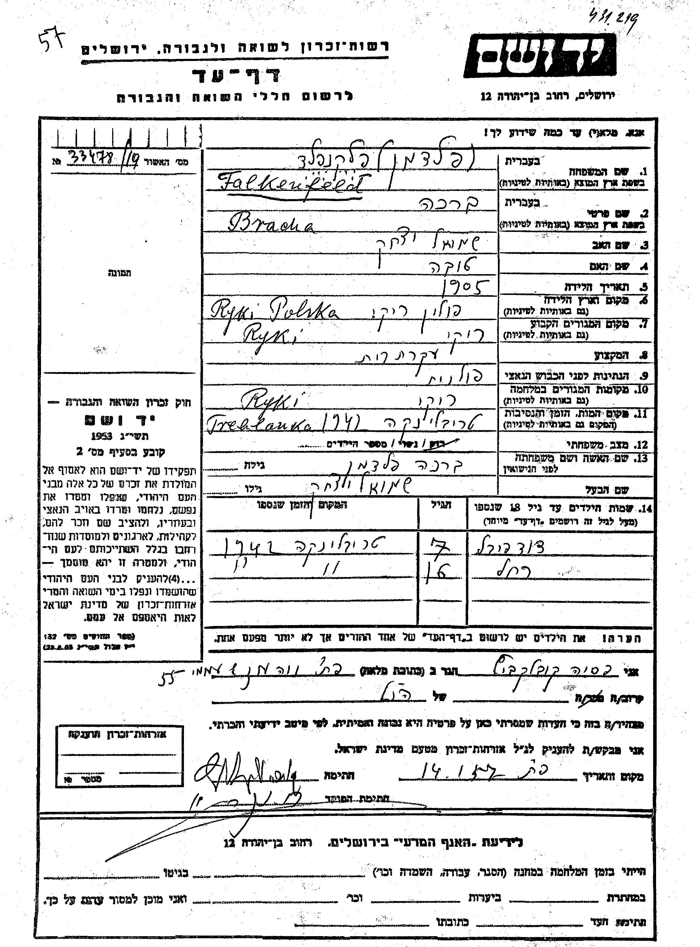 Yad Vashem - Pages of Testimony Names Memorial Collection