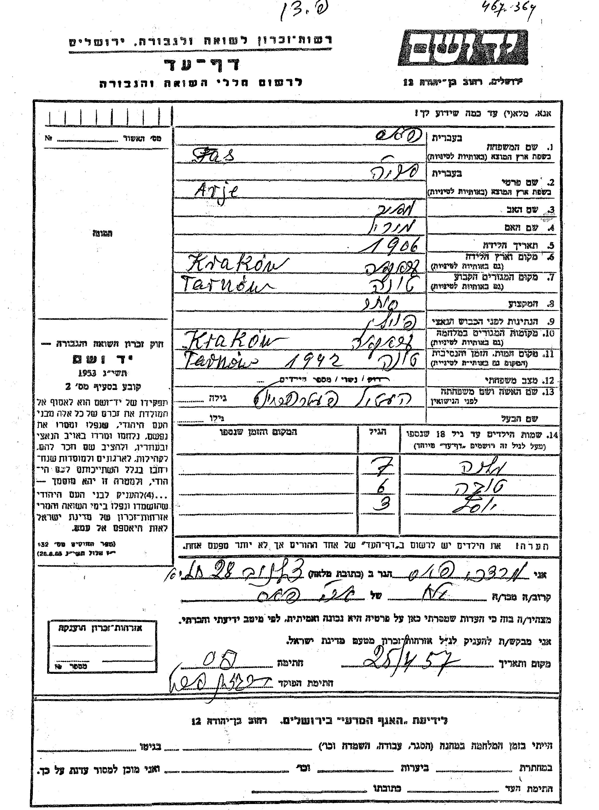 Yad Vashem - Pages of Testimony Names Memorial Collection