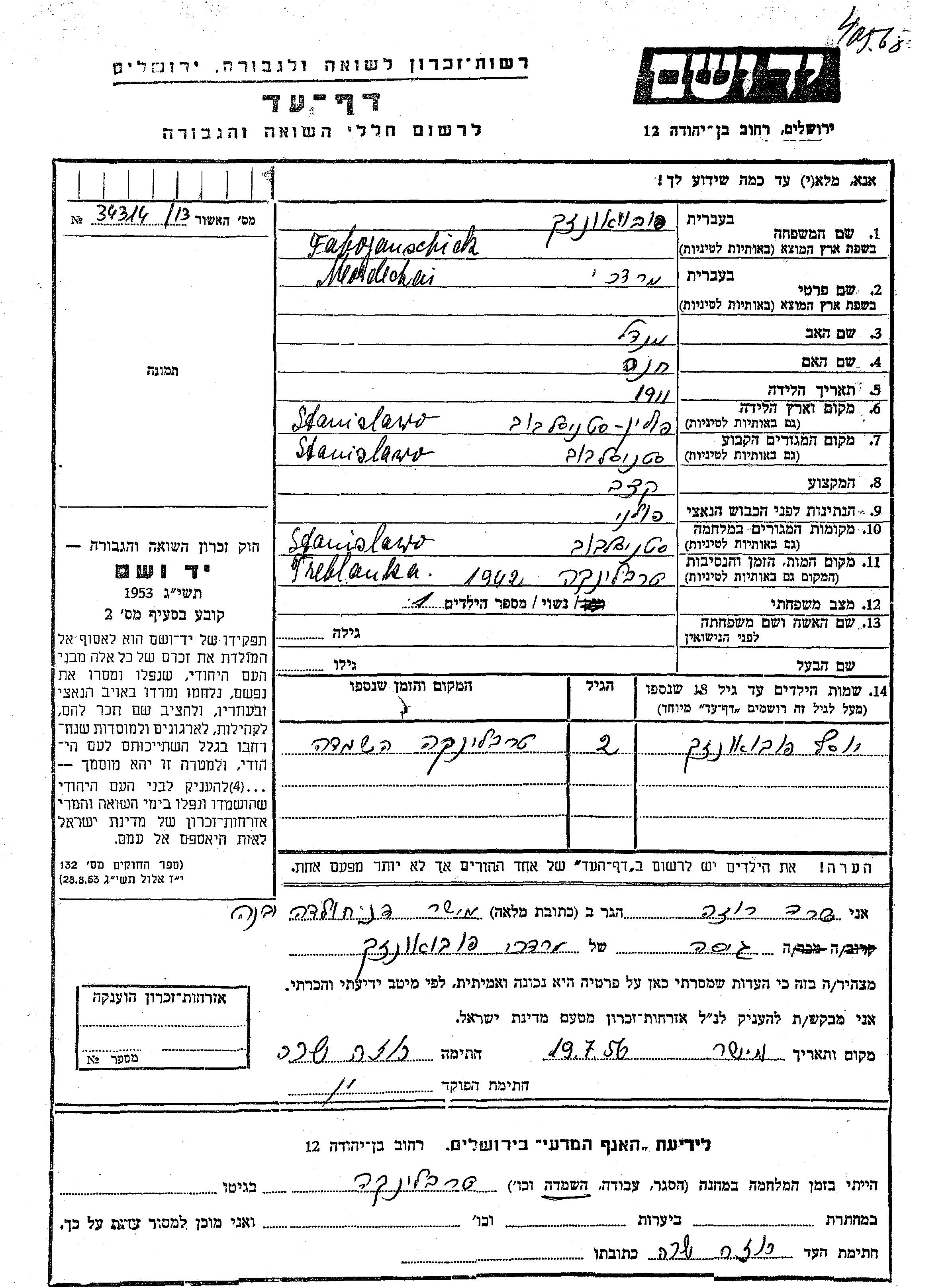 Yad Vashem - Pages of Testimony Names Memorial Collection